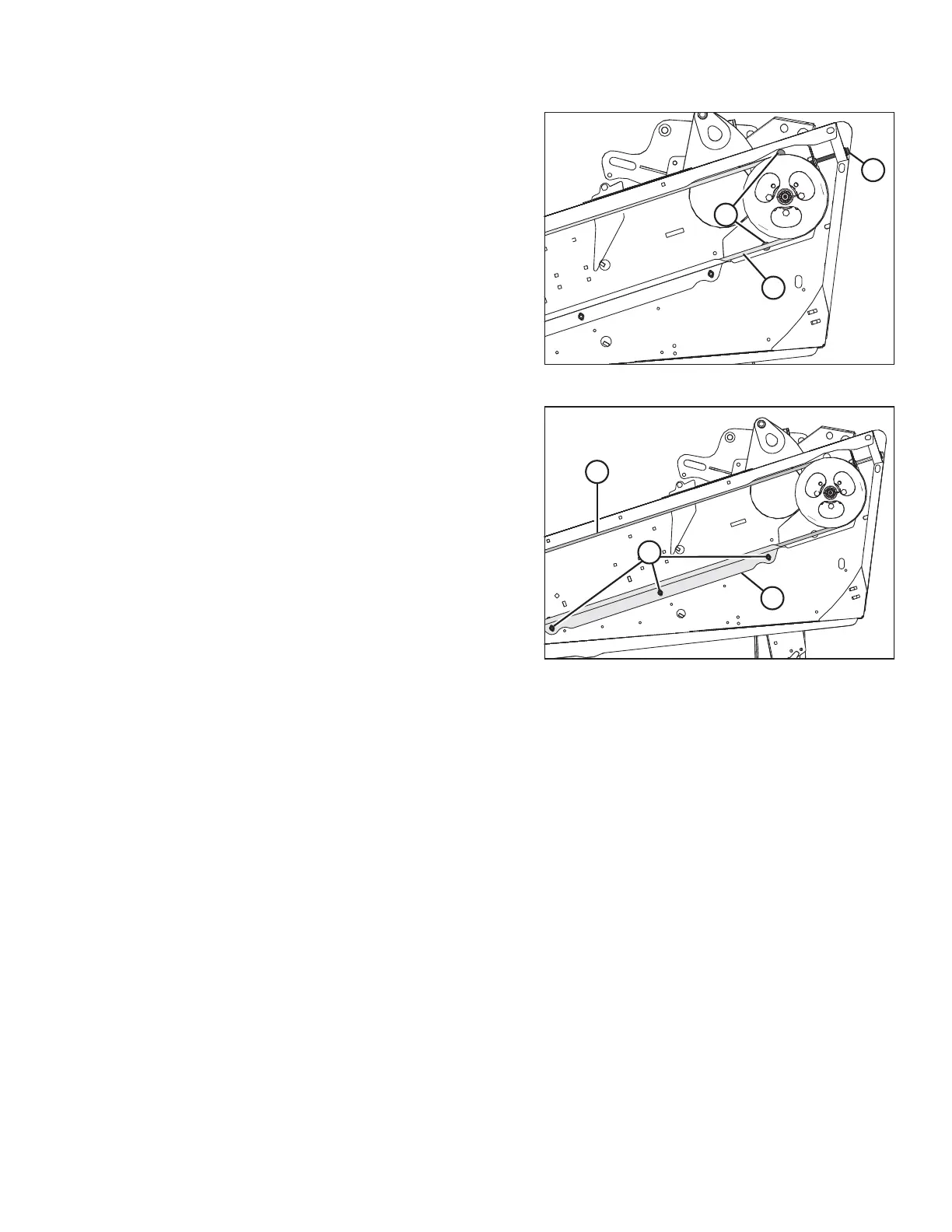 5. Ensure clearance between belt (A) and belt guide (B) is