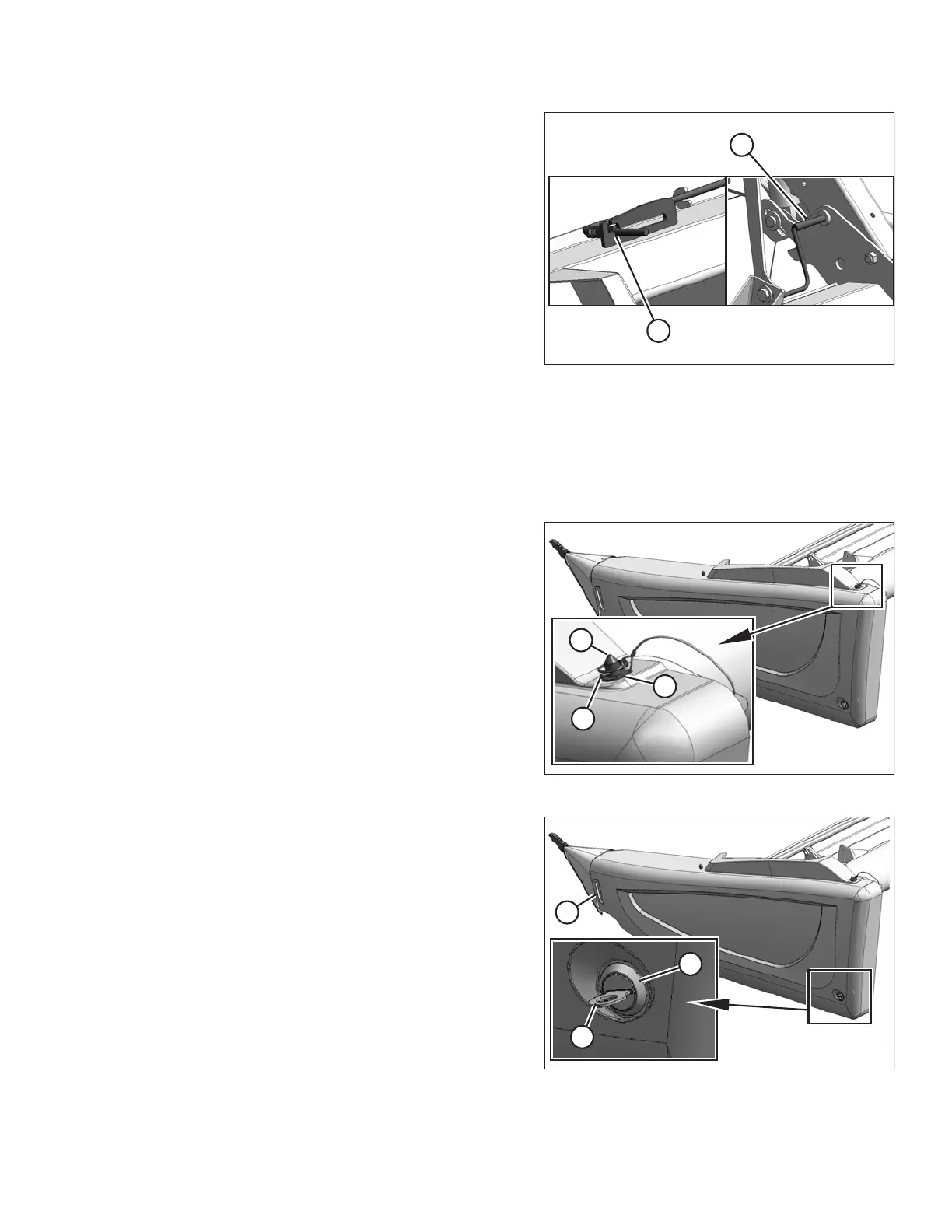 2. Use tool (B) to unlock latch (A) at lower rear corner