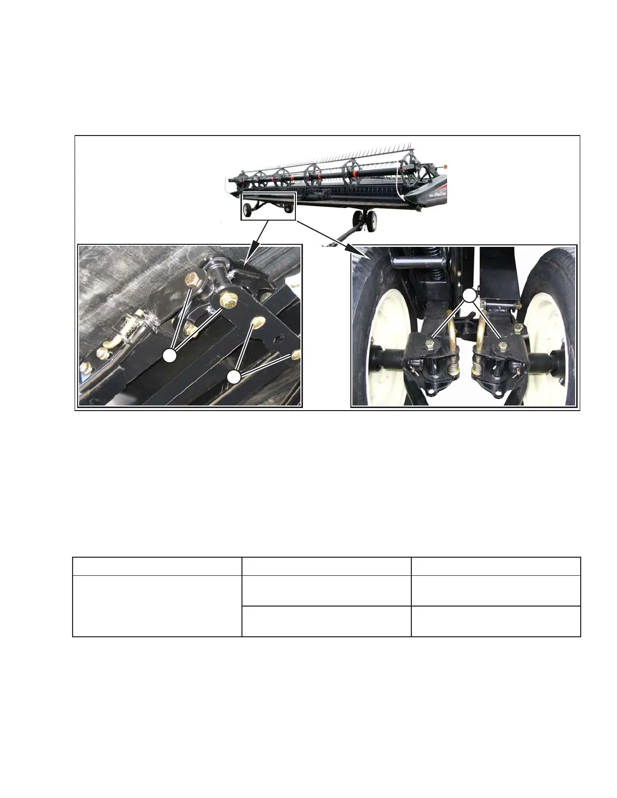 If a transport system is installed, adhere to the following procedure for torquing the axle bolts: