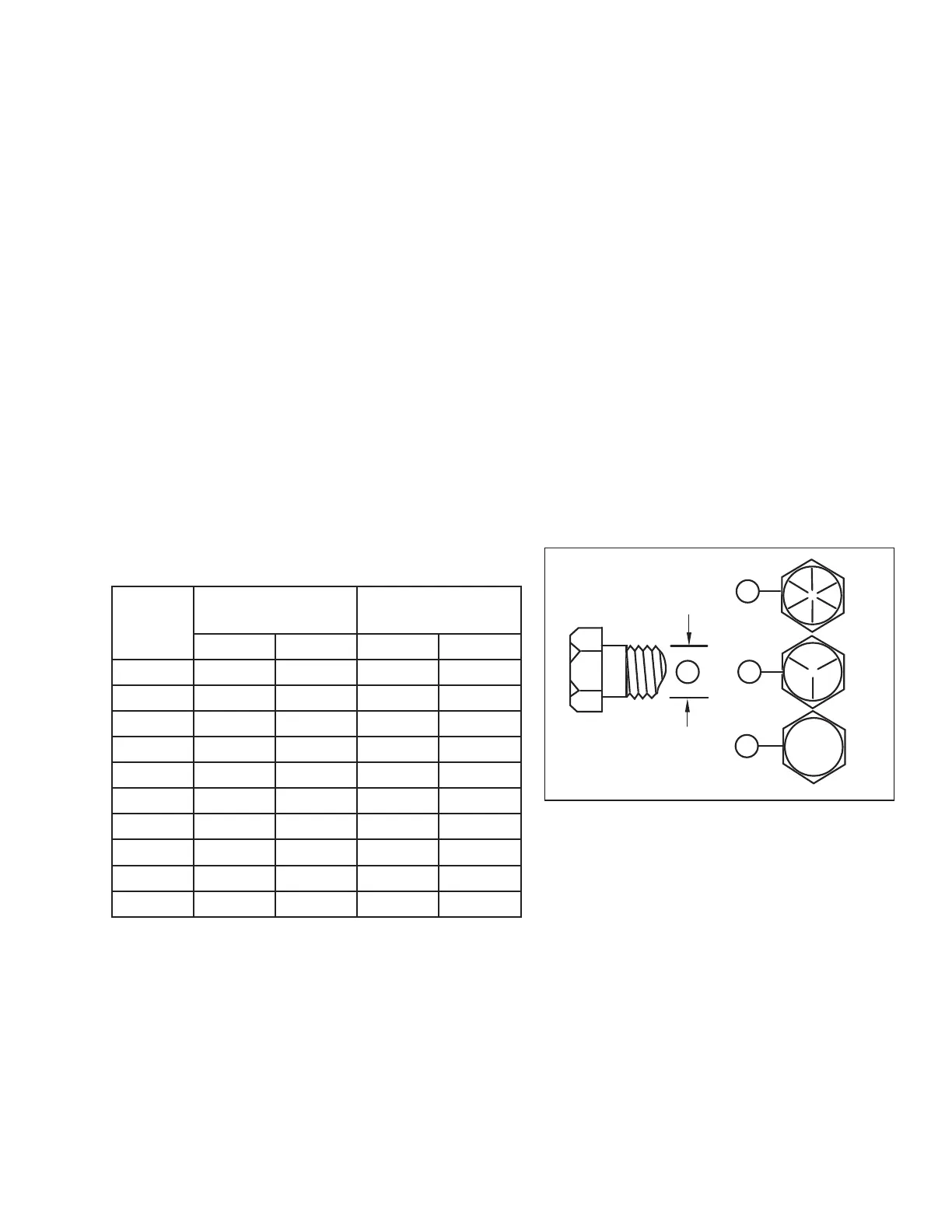 • Use torque value tables as a guide and periodically check tightness of bolts.