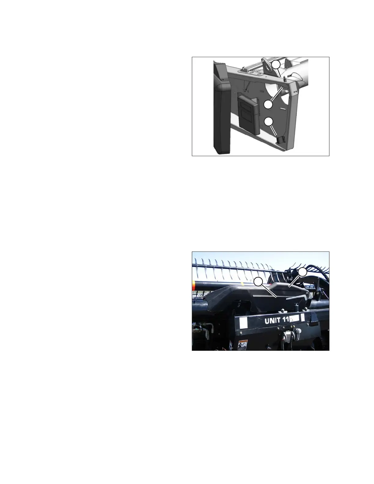 Plastic covers are attached to the header frame to protect the header wing balance mechanism from debris and