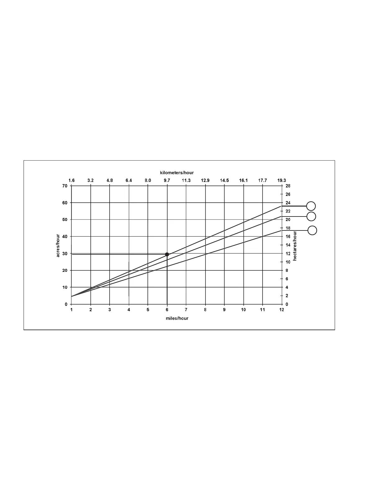 Figure 3.84, page 80 illustrates the relationship between ground speed and area cut for the various sized headers.