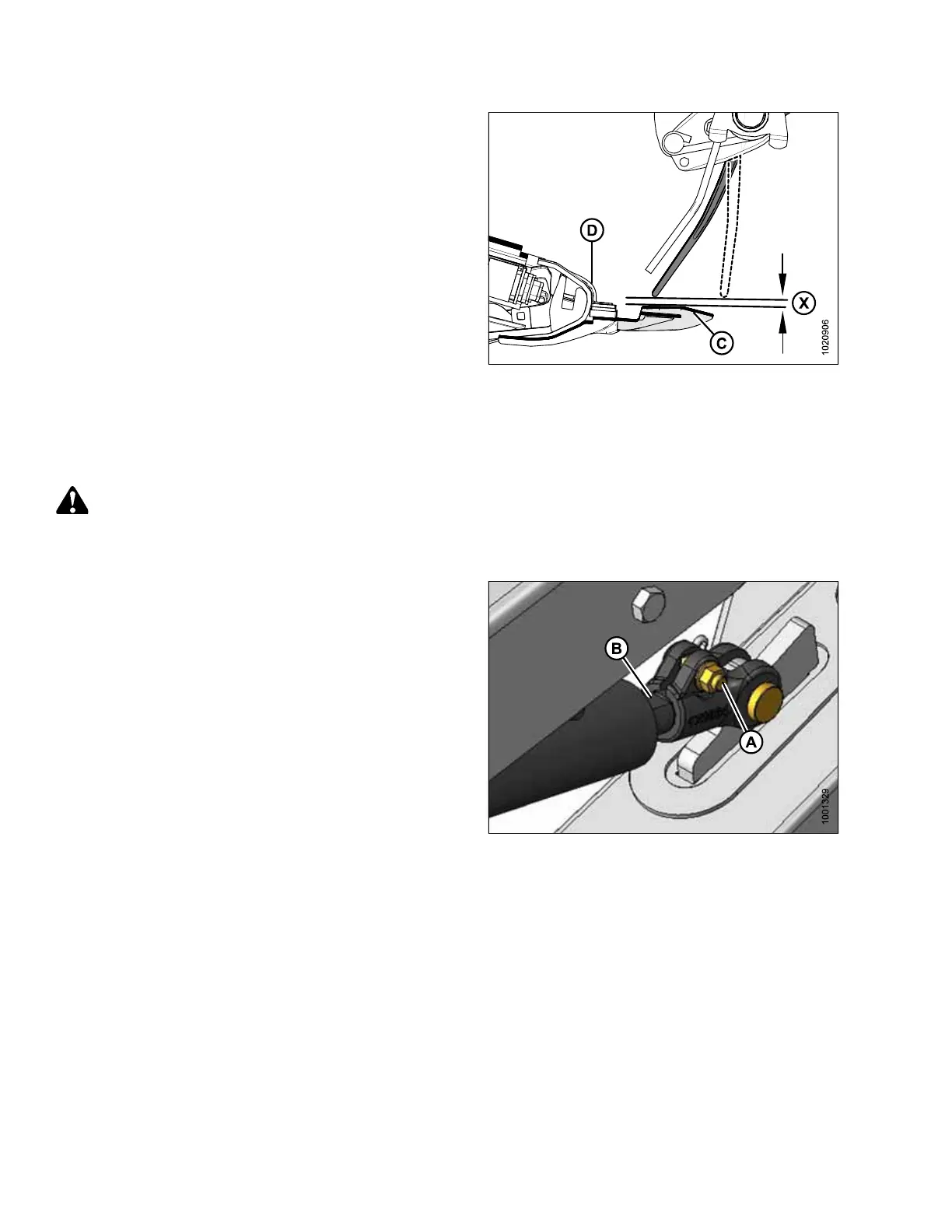 10. Check clearance (X) between (C) and (D). Depending