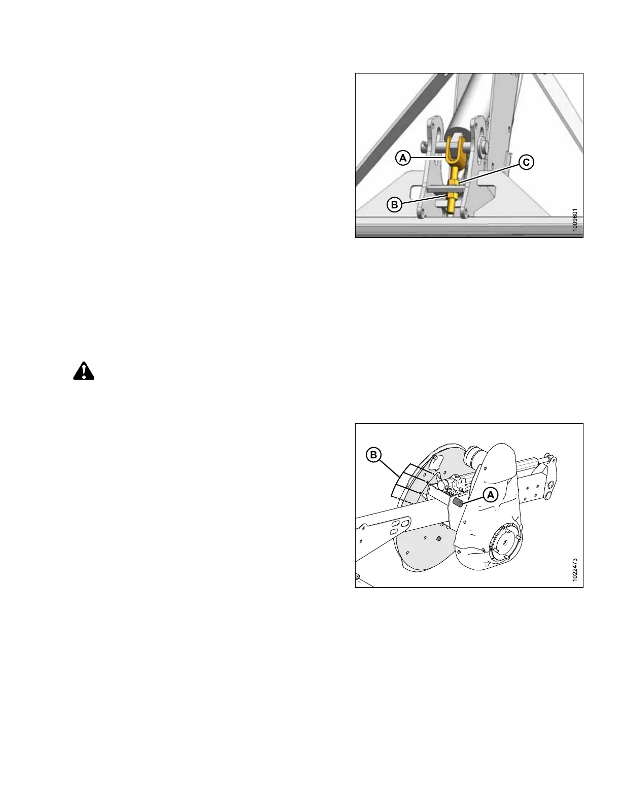 2. Adjust center arm lift cylinder link (A) to set clearance at