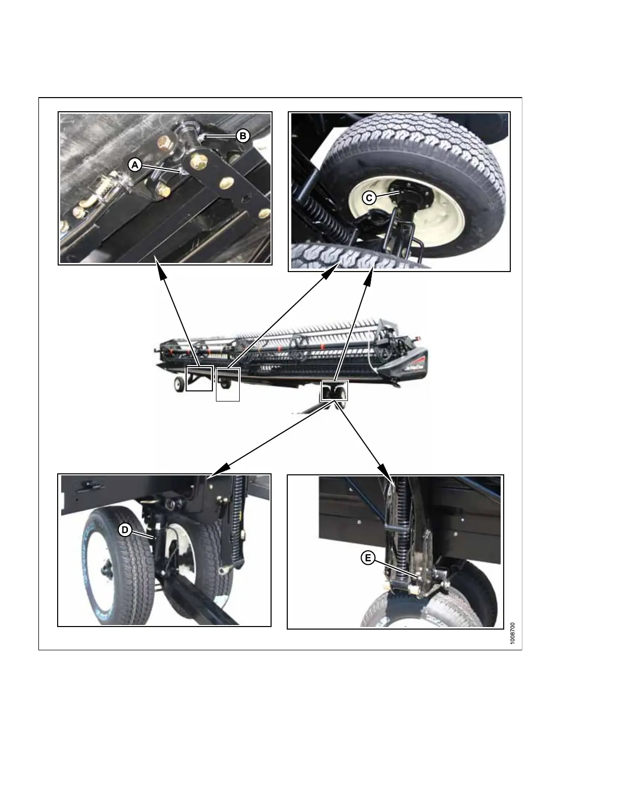D - Front Wheel Pivot E - Frame/Wheel Pivot (1 Place) Both Sides
