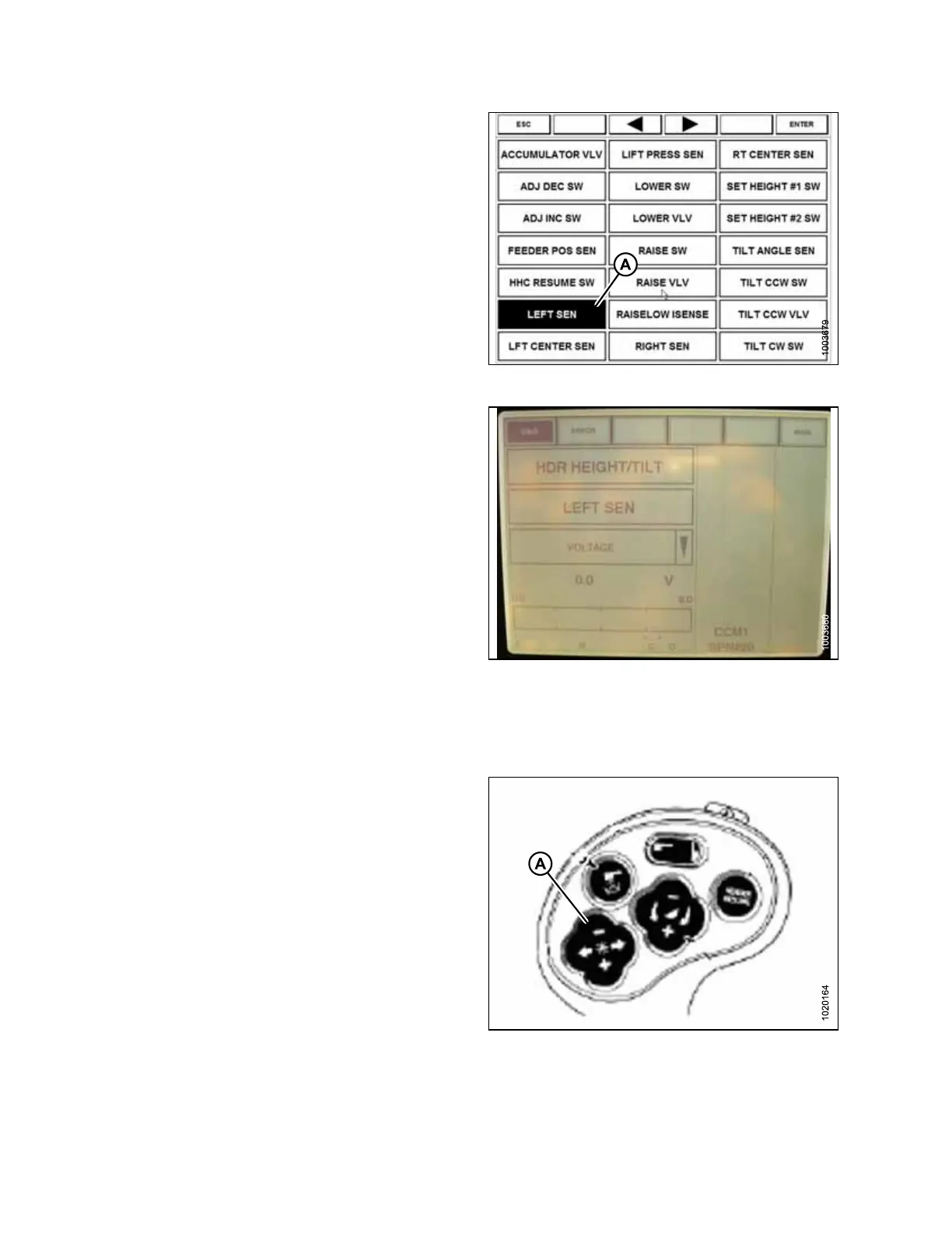 The reel fore/aft controls (A) also control header fore/aft tilt