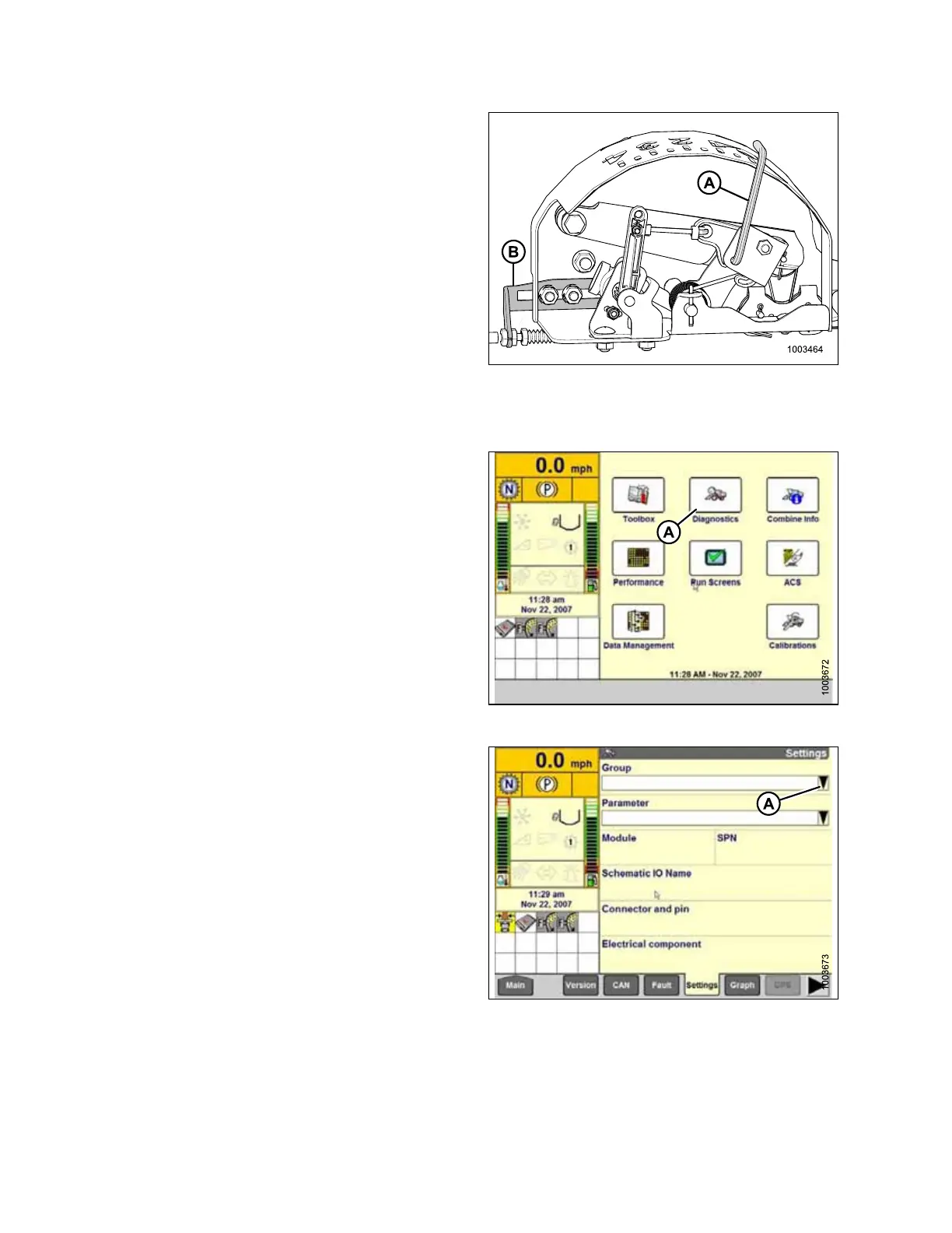 5. Select DIAGNOSTICS (A) on MAIN page. The