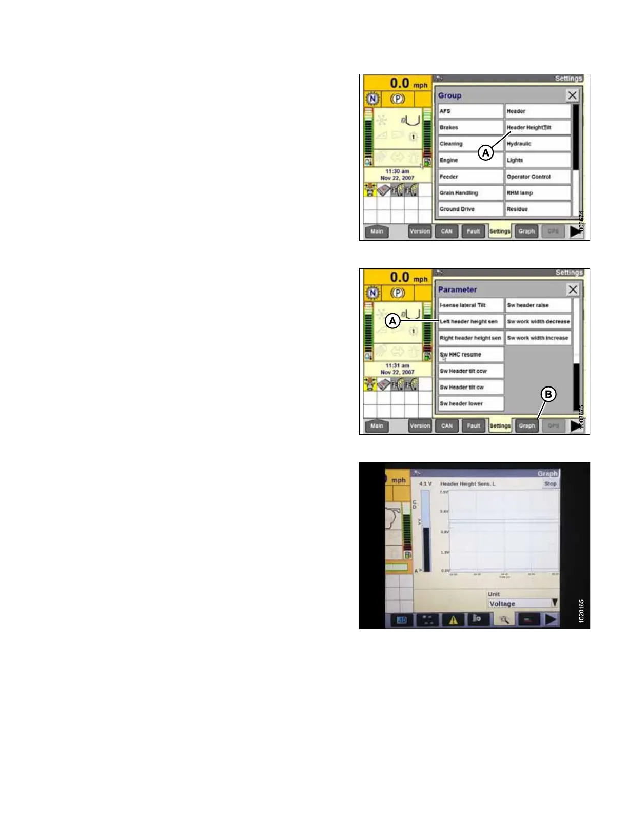 8. Select HEADER HEIGHT/TILT (A). The PARAMETER