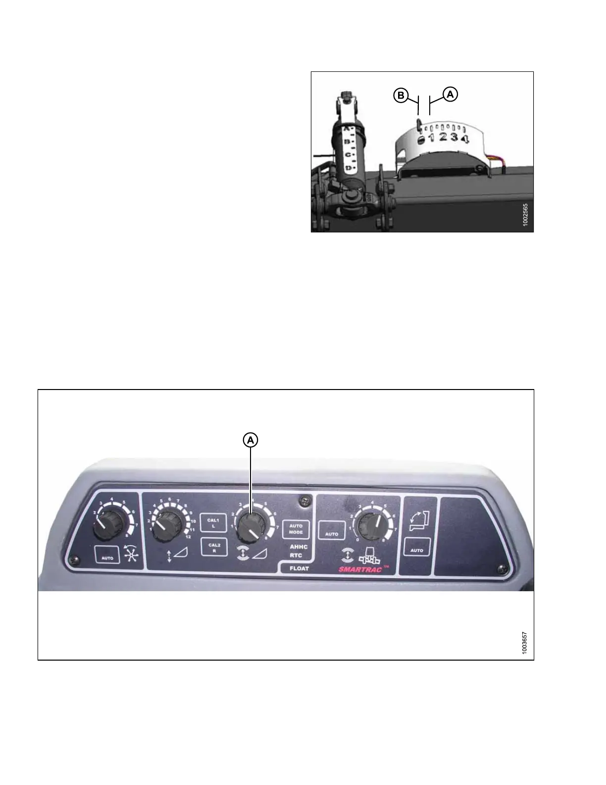 The SENSITIVITY ADJUSTMENT dial (A) controls the distance cutterbar must travel up or down before AHHC