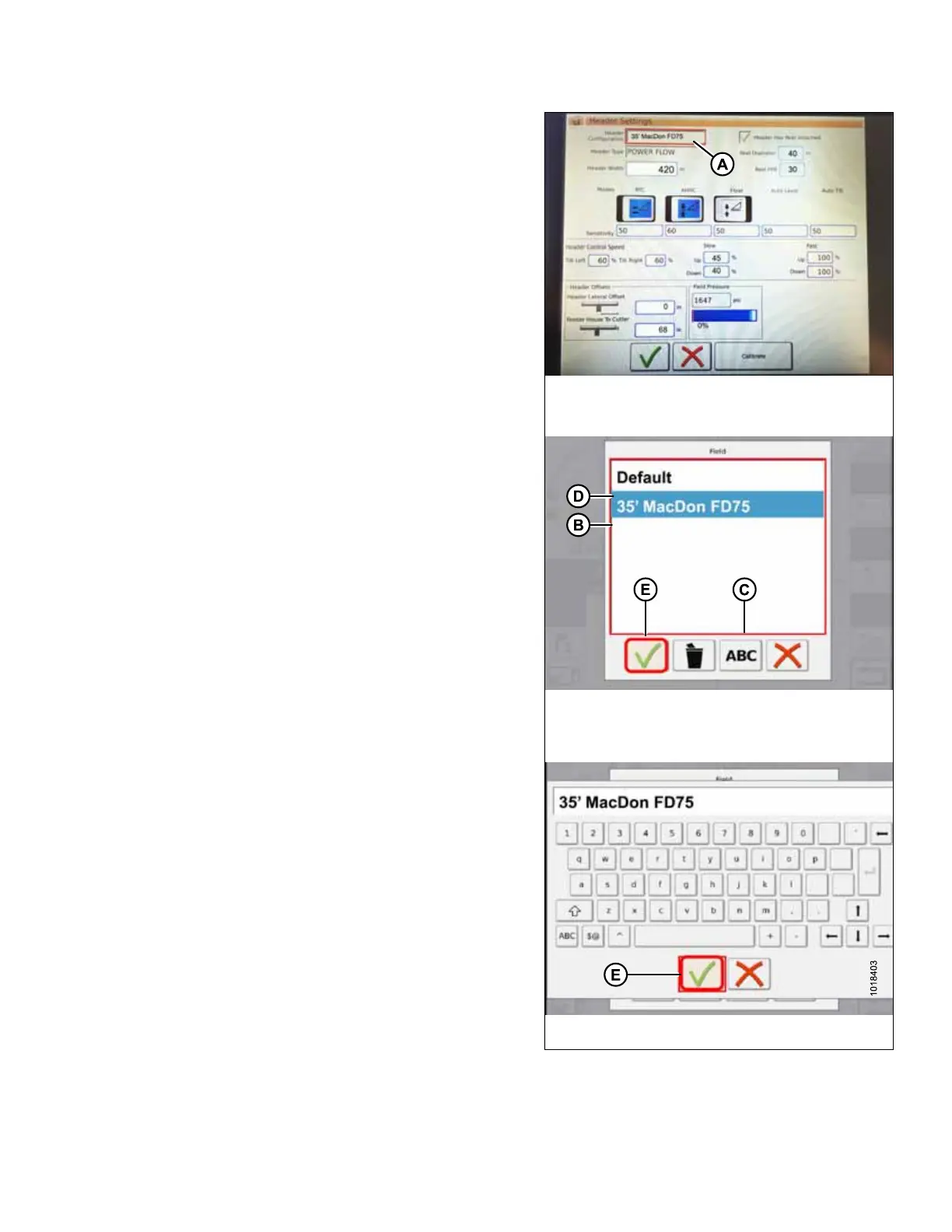 on header list. Touch MacDon header title (B) to