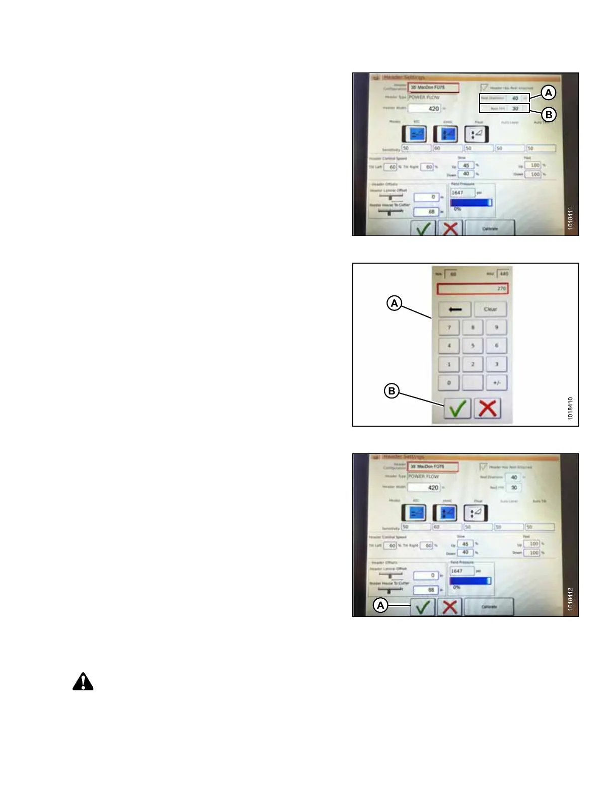 keypad displays. Enter 40 as MacDon Reel Diameter.