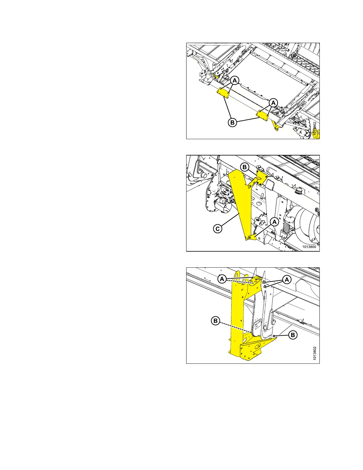 12. Remove four bolts (A) and two bolts (B) from shipping