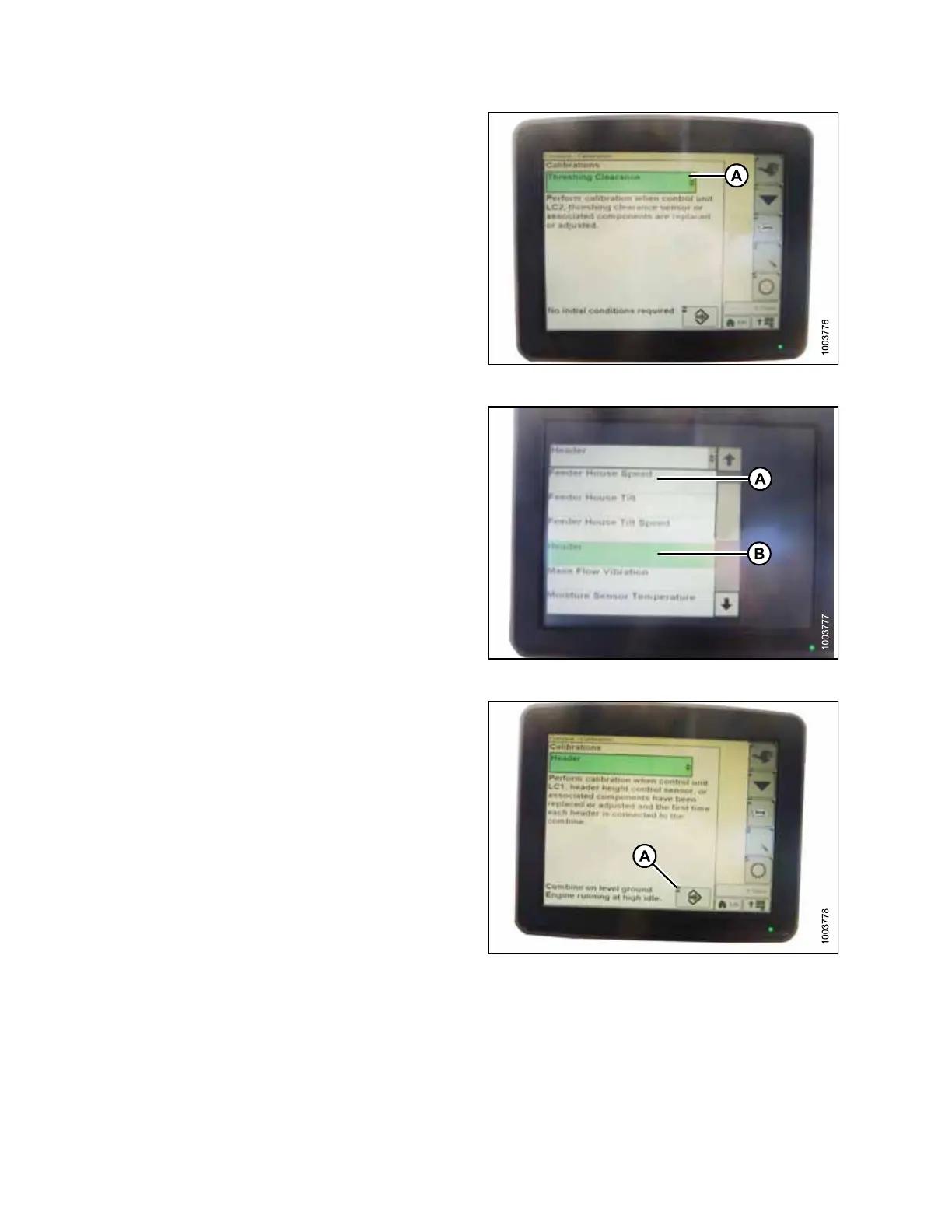 5. Select THRESHING CLEARANCE (A) and a list of