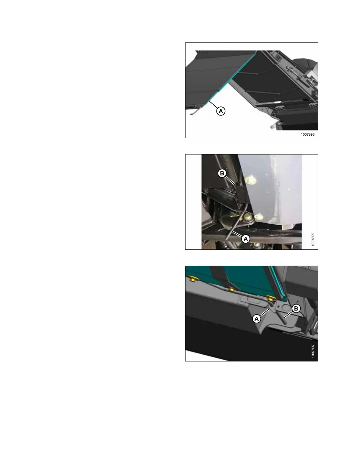 8. Push handle (B) into slot and secure it with latches (A).