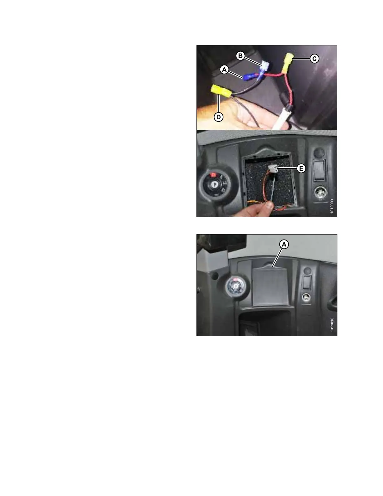 e. Attach red wire male connector (A) and black wire