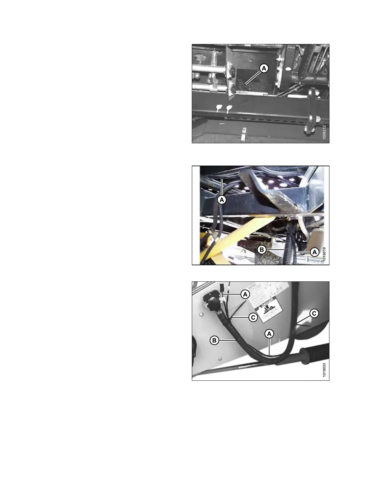 26. Route switch harness (A) under the cab floor alongside