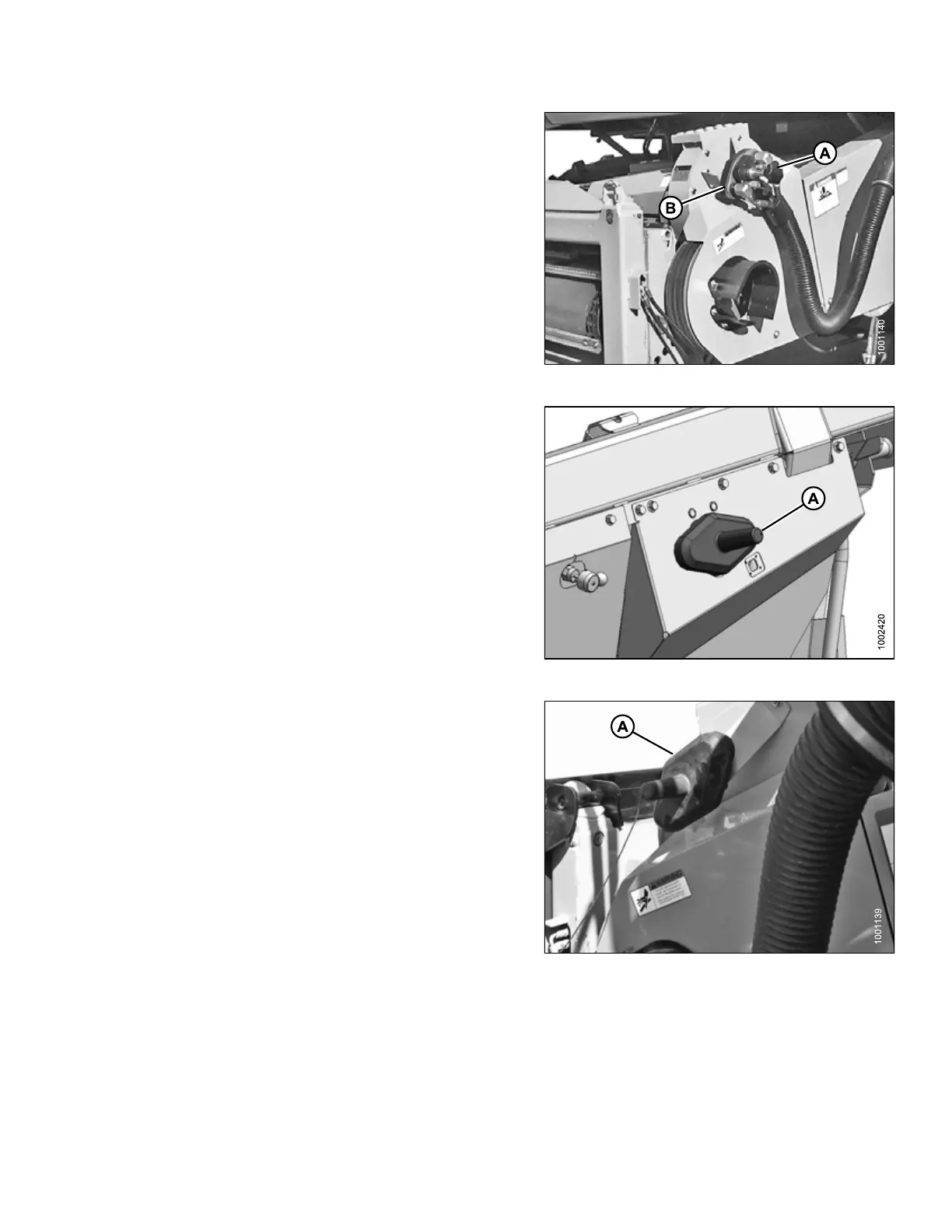 10. Unscrew knob (A) on combine coupler (B) to release
