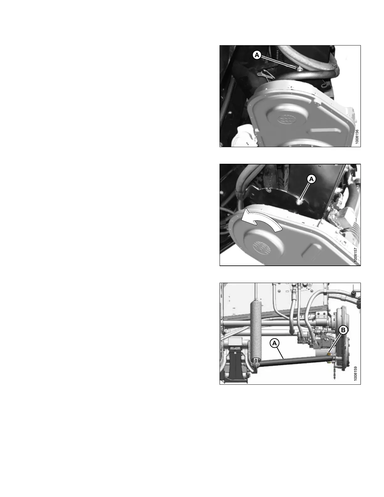 5. Position brace (A) inside bracket, and reinstall bolt (B)