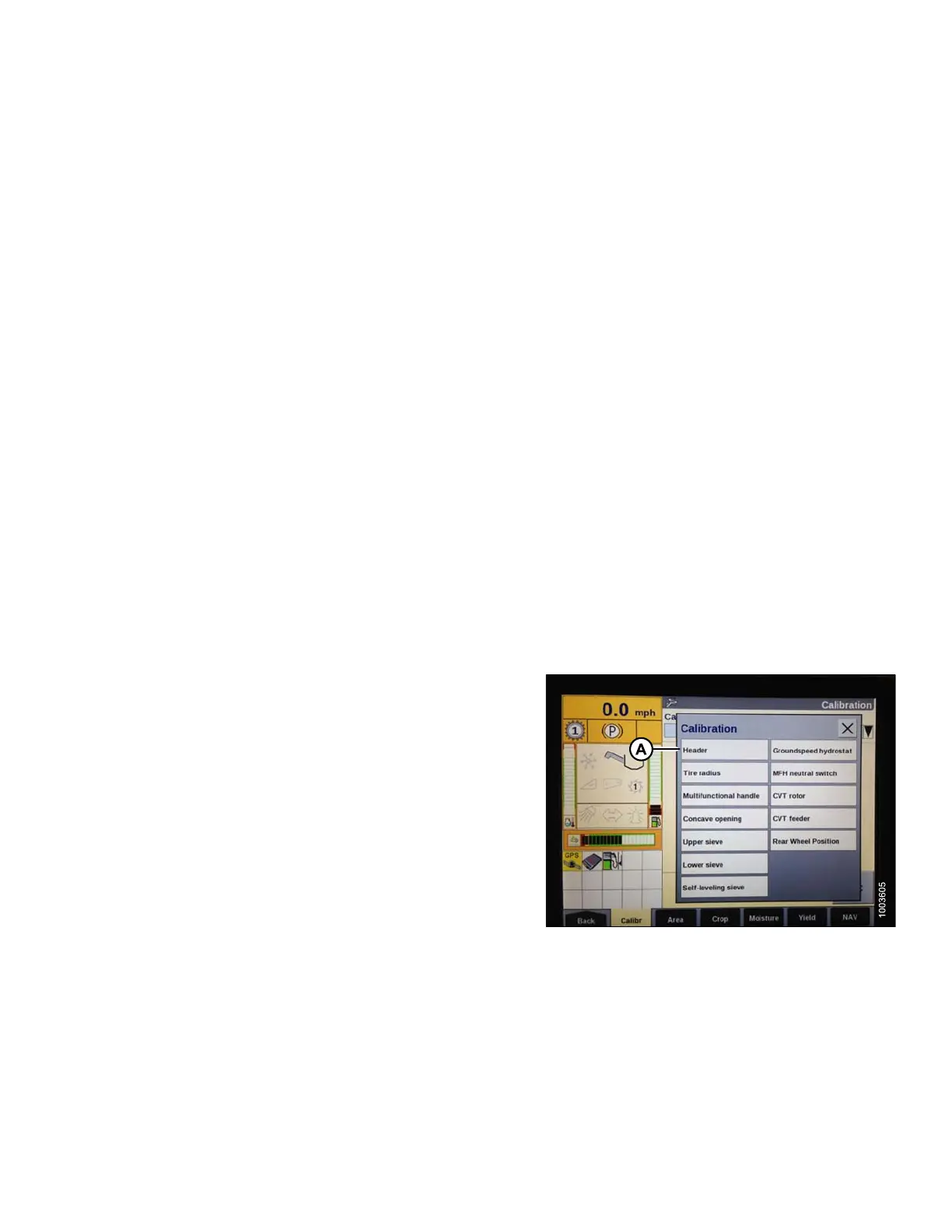 1. Select CALIBRATION on the combine display, and