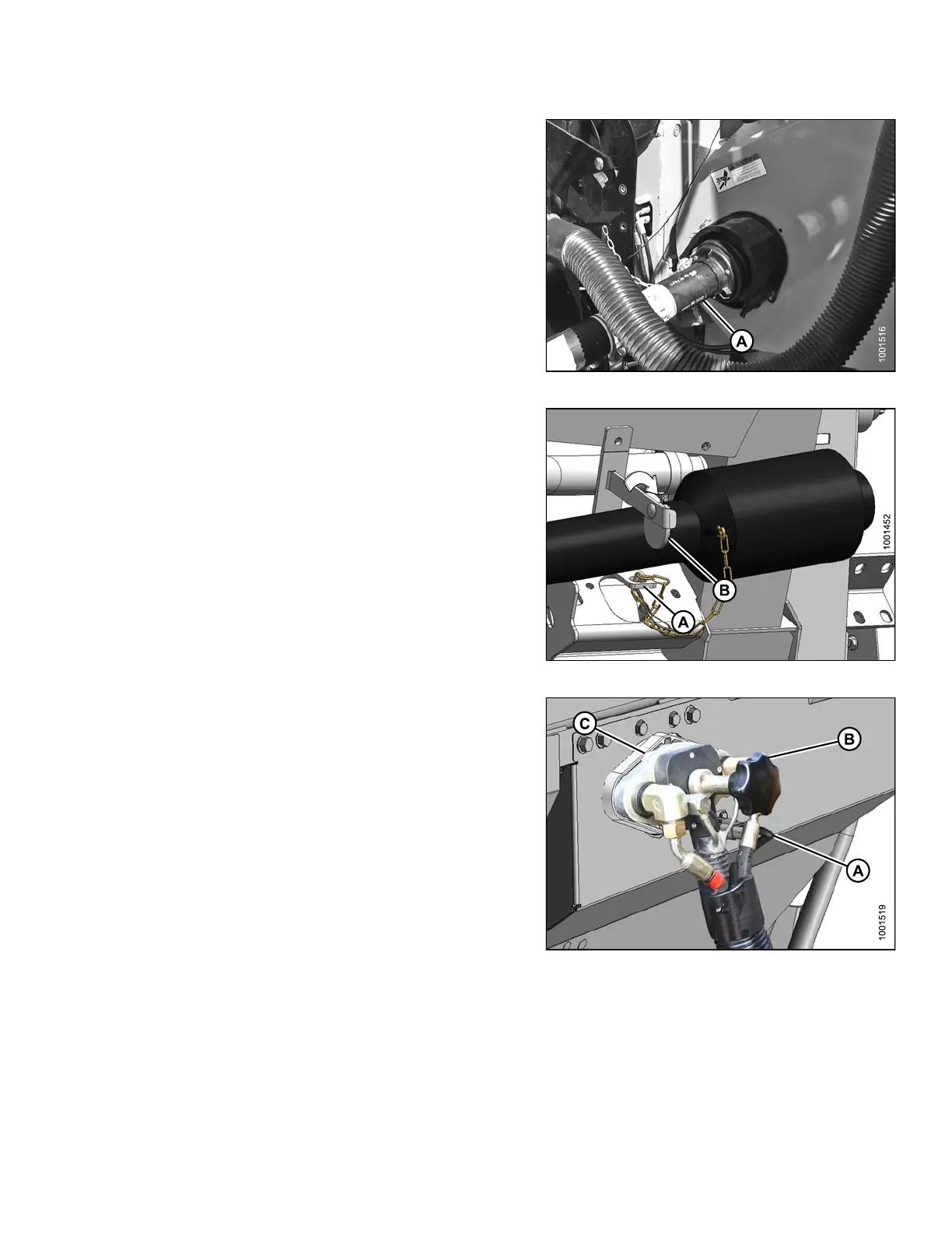 3. Disconnect driveline (A) from combine.