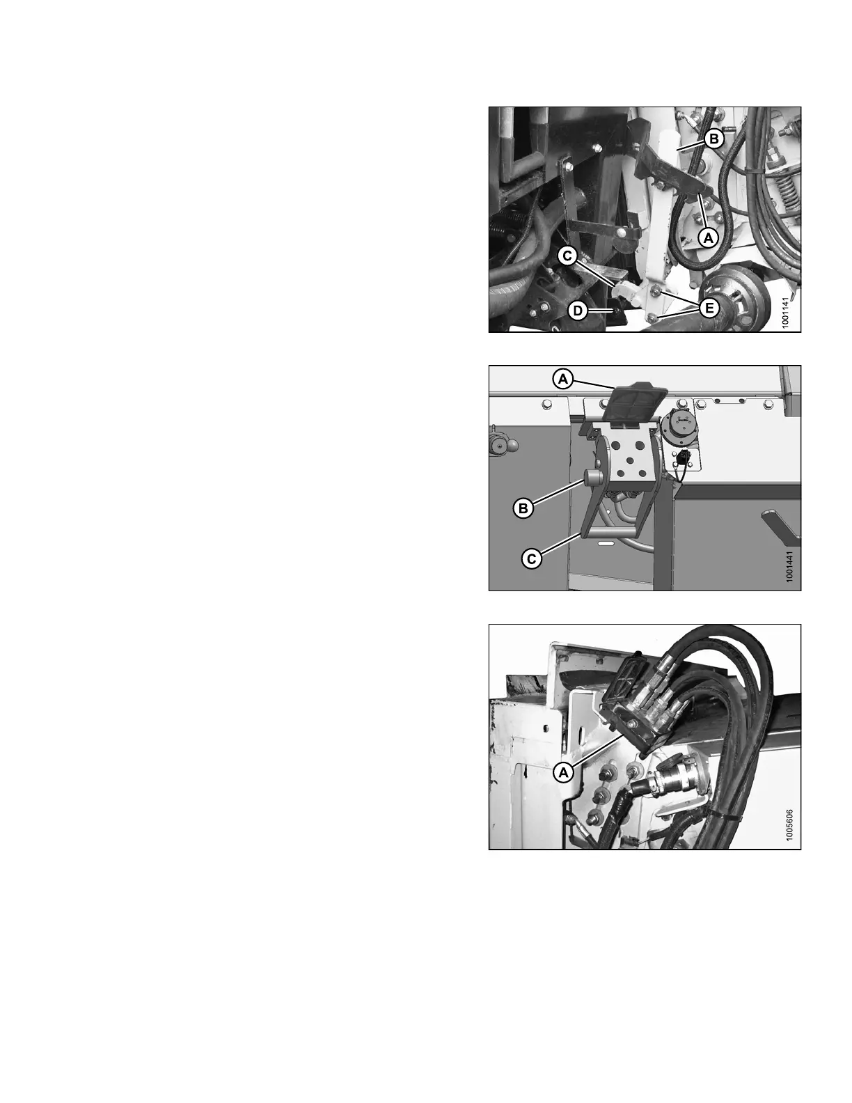 5. Lift lever (A) on adapter at left side of feeder house, and