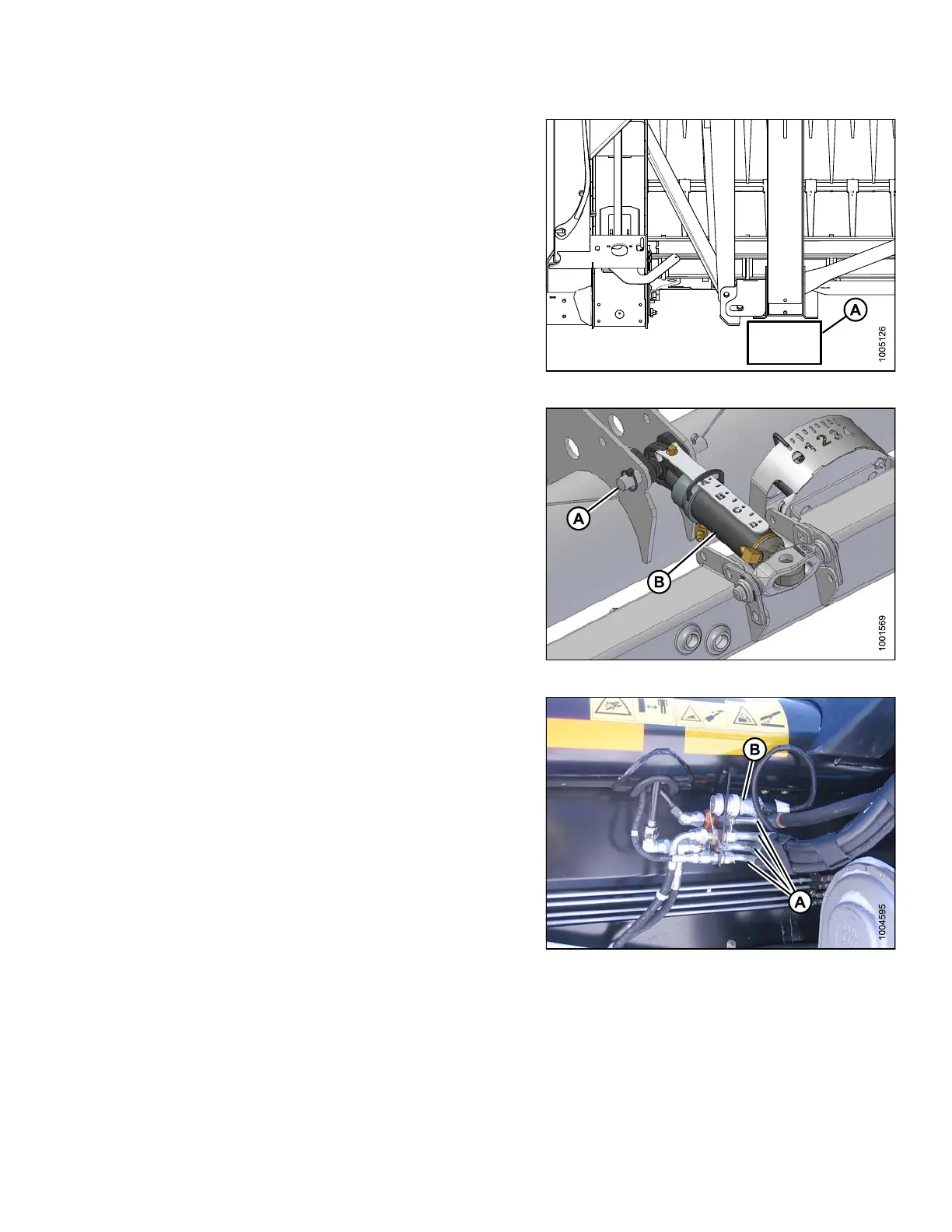 19. Disconnect knife and draper drive hydraulic hoses (A)