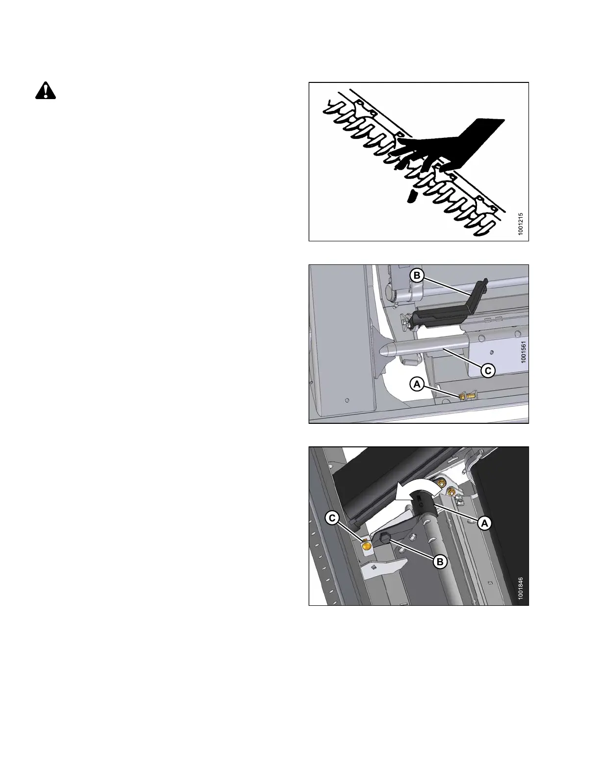to raise feed deck so that bolt (C) can be
