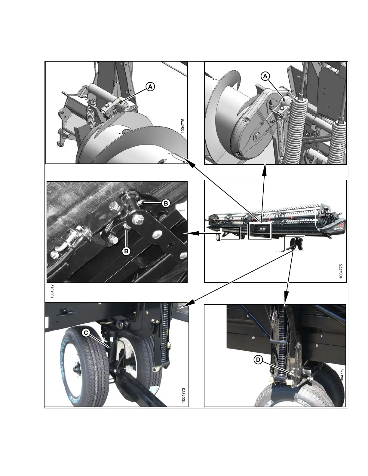 C - Front Wheel Pivot (1 Place) D - Frame/Wheel Pivot (1 Place) - Both Sides