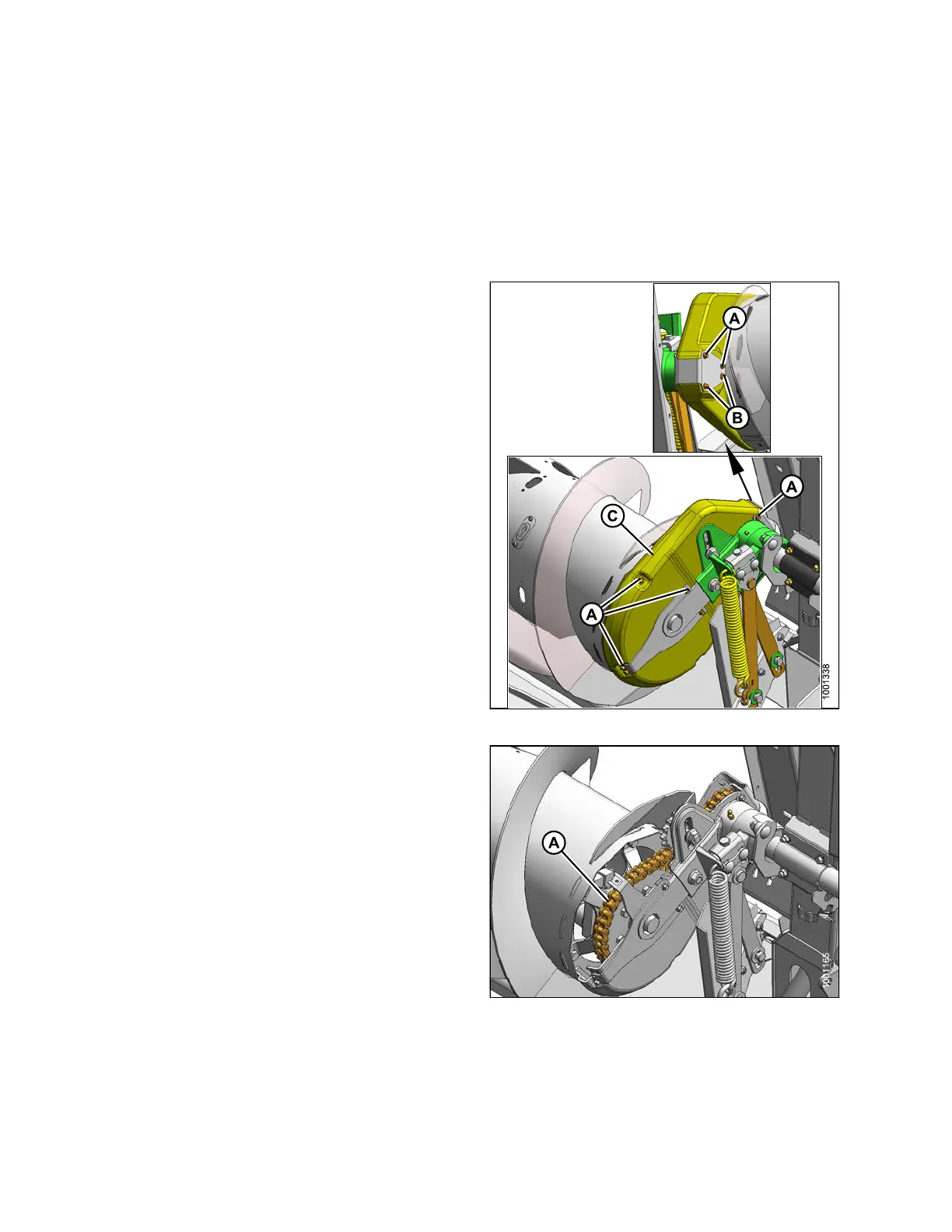Lubricate auger drive chain every 100 hours. This can be done with the adapter attached to the combine, but is