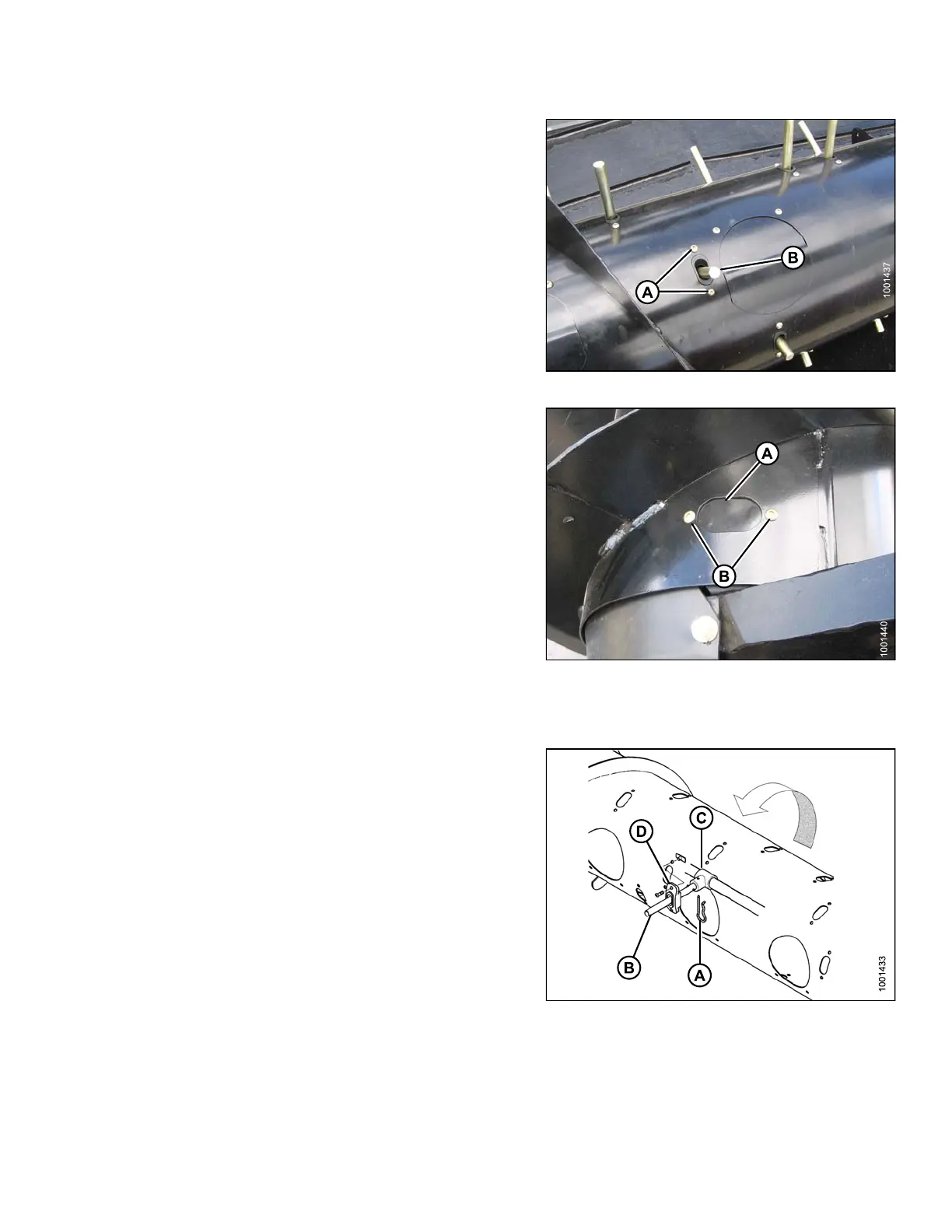 7. Remove screws (A) securing plastic guide (B) to auger,