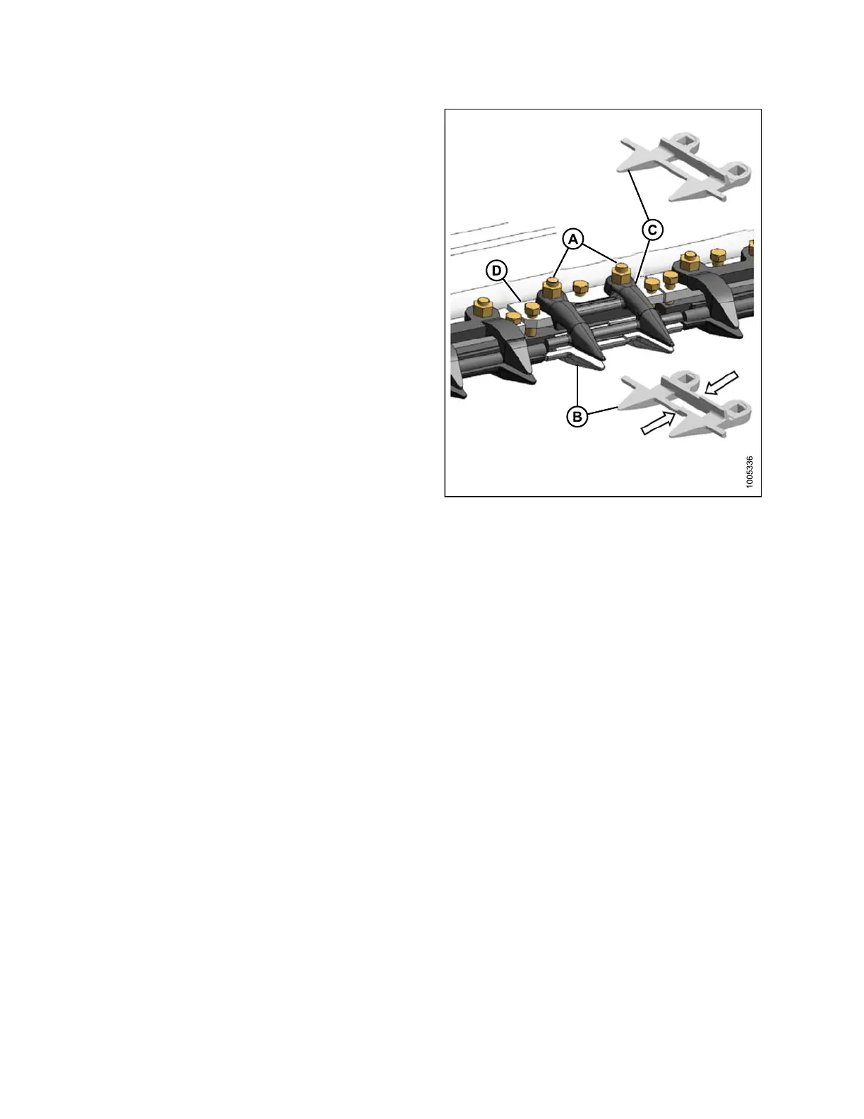 and top gu ide (C) and adjuster bar (D) to cutterbar.