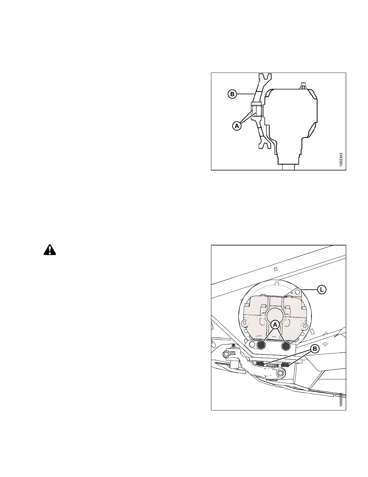 3. Slightly tighten knife drive box side bolts (A) first, then