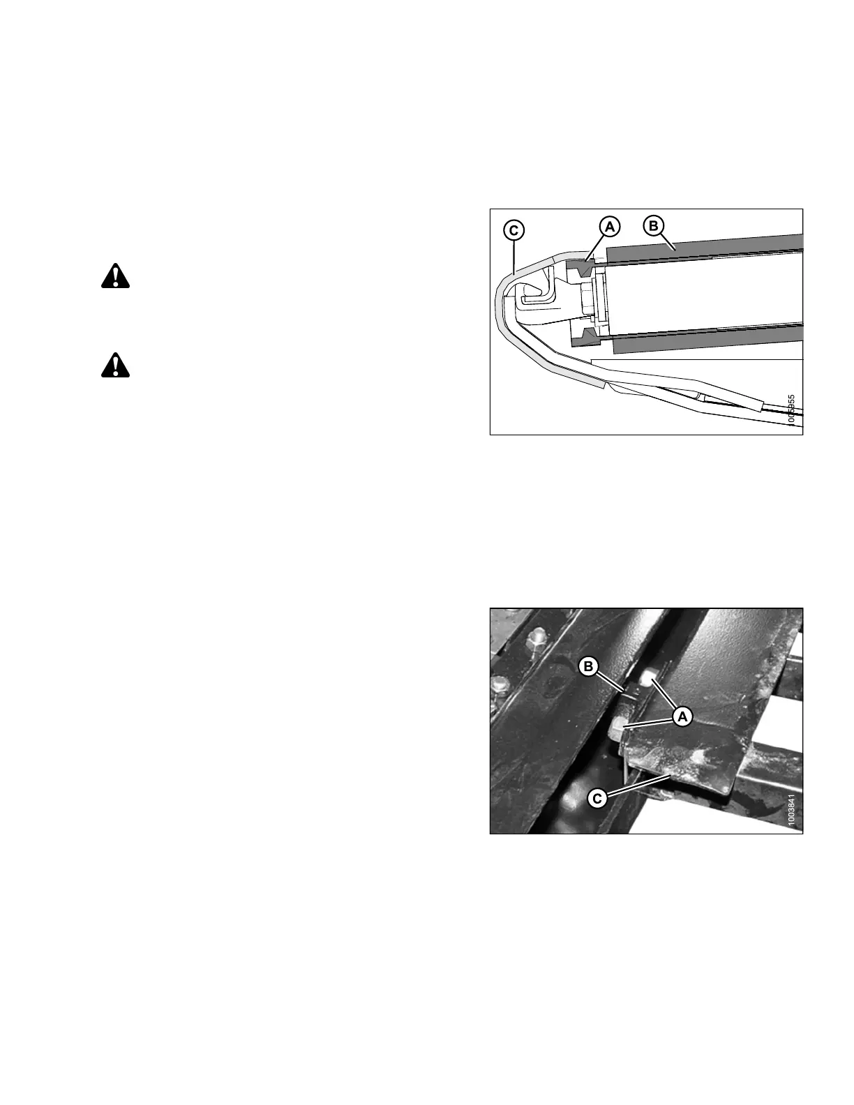 4. Tap deck (C) to lower deck relative to supports. Tap