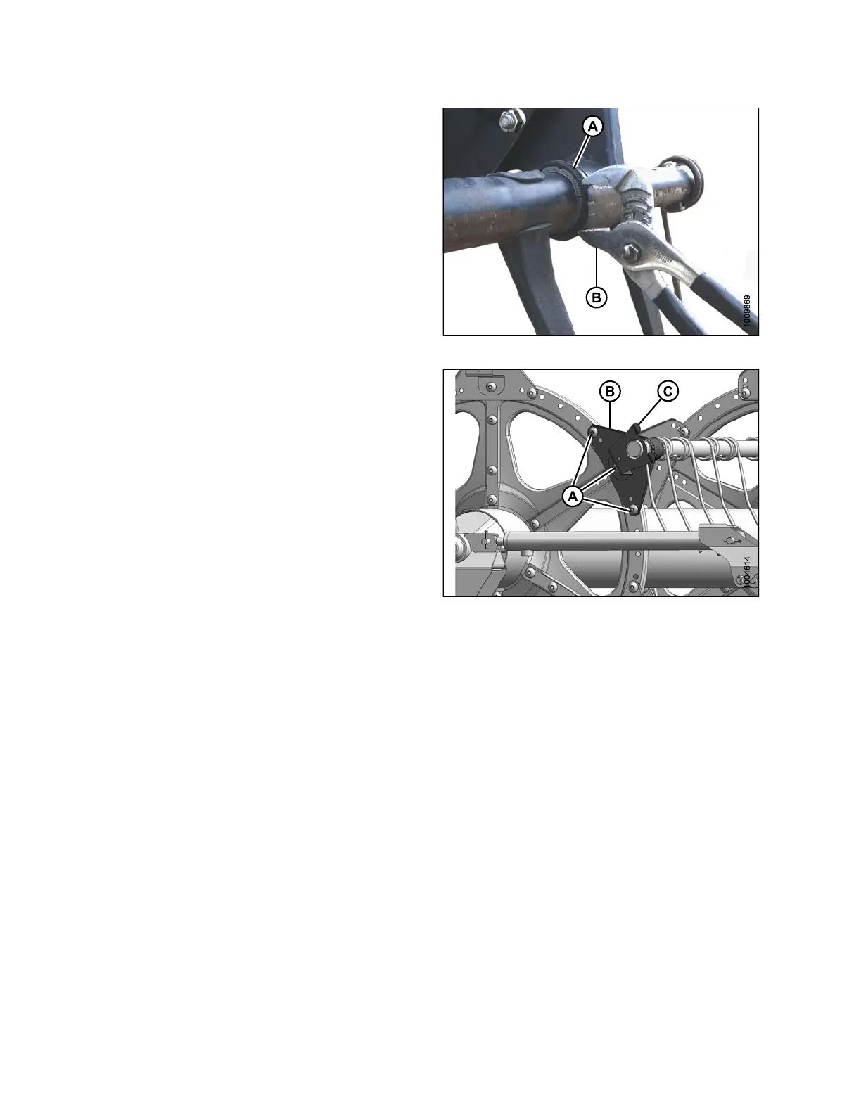 18. At the center dis c, install t he bolts (A) securing arm (B)