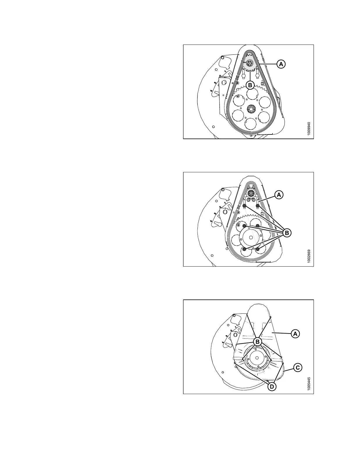 3. Install the chain (A) onto drive sprocket (B).