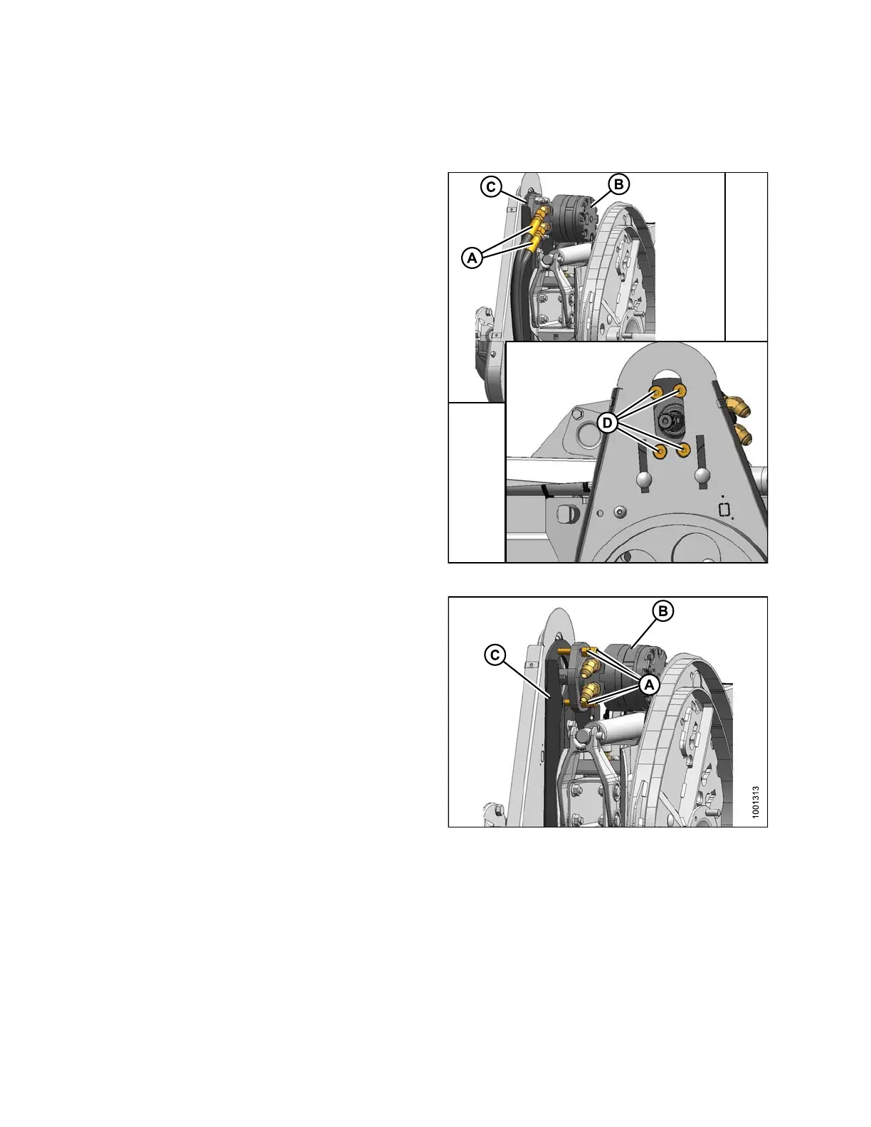 1. Disconnect hydraulic lines (A) at motor (B). Cap or plug