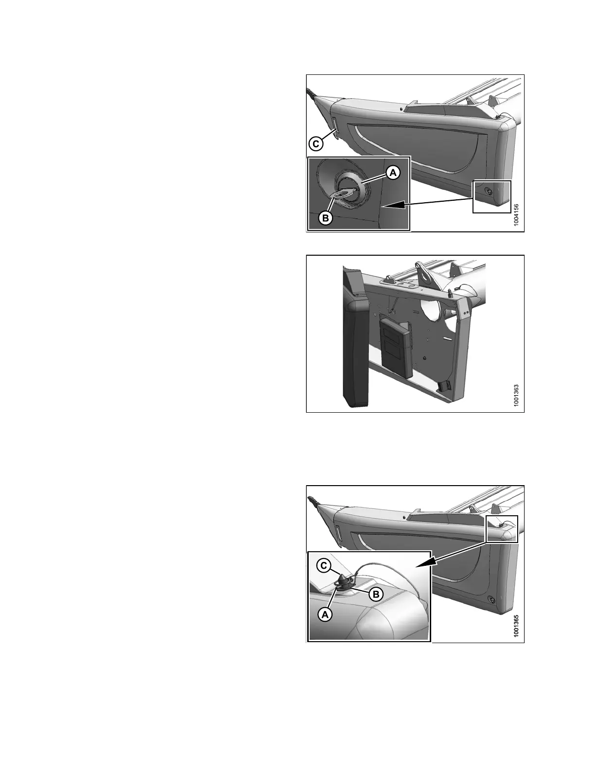 2. Use tool (B) to unlock latch (A) at lower rea r corne r