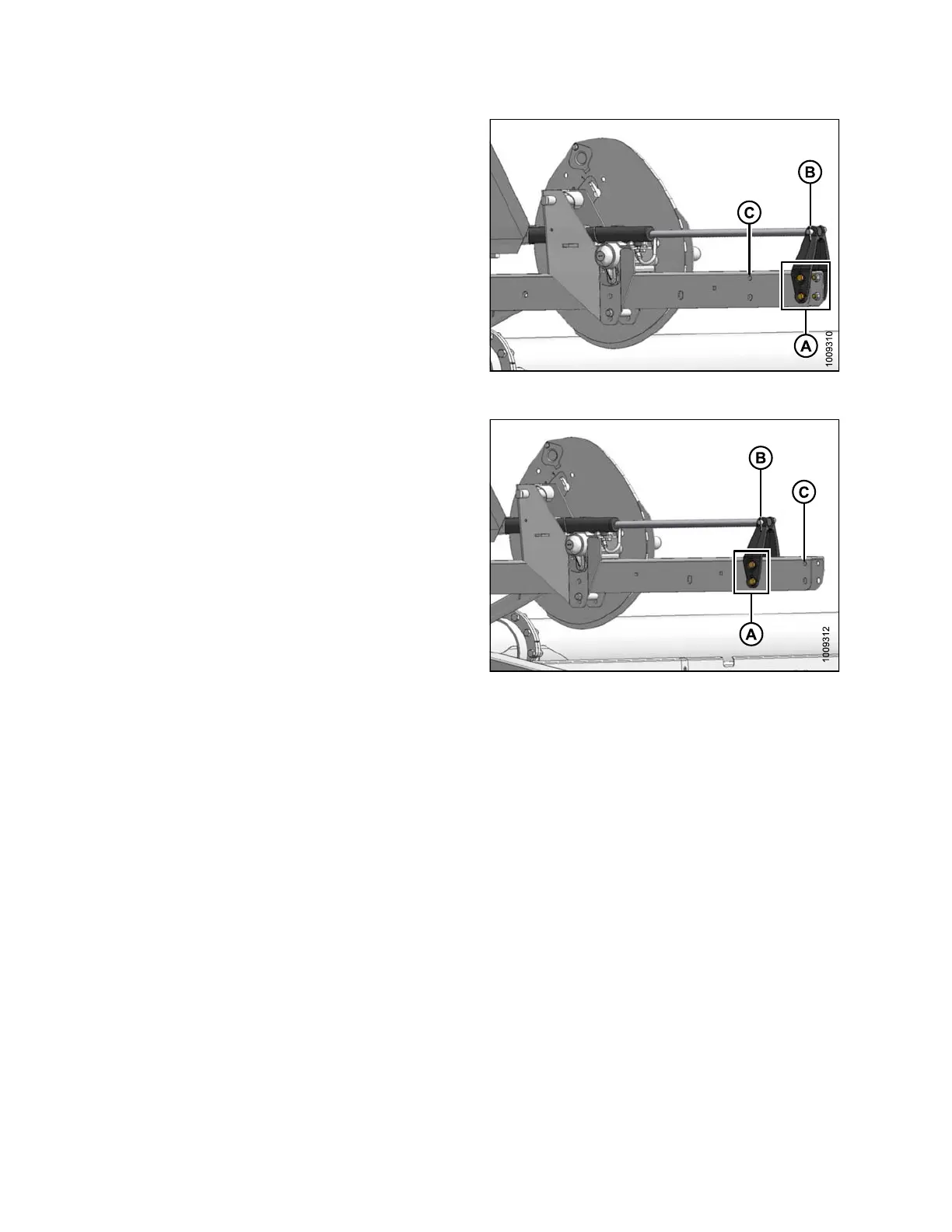 8. Reinstall the four bolts (A) to secure bracket to reel arm