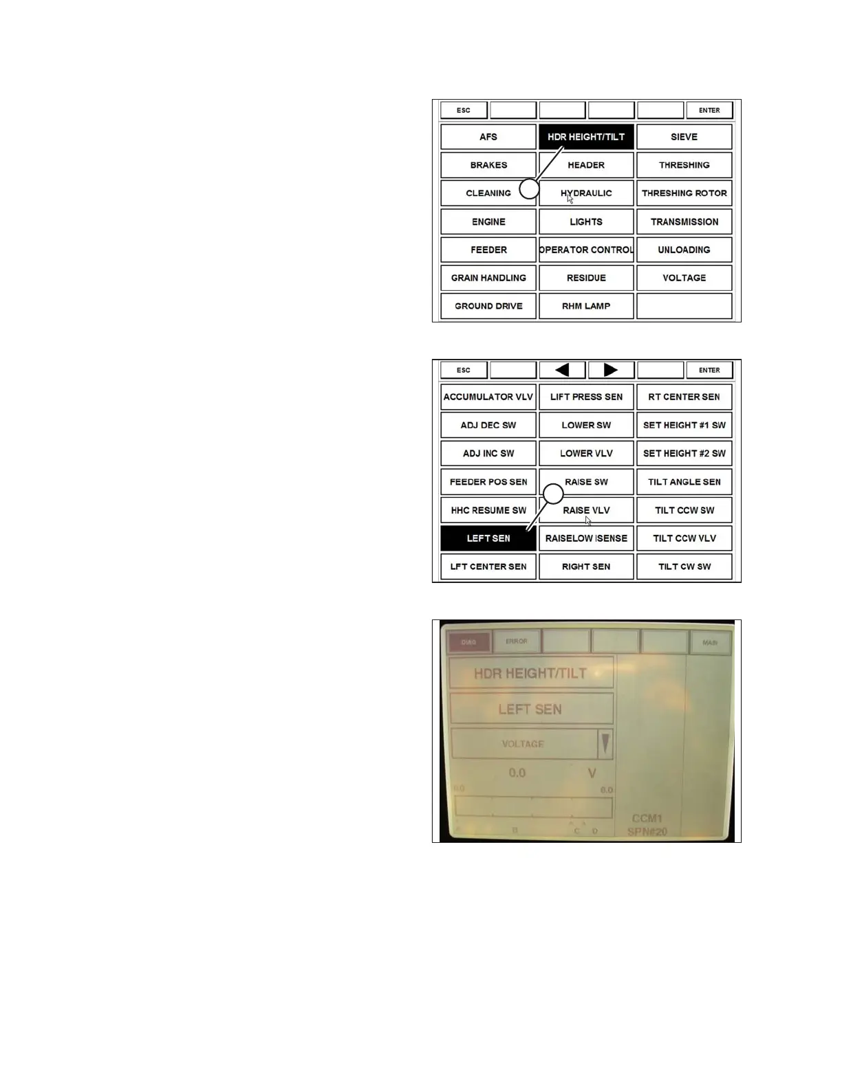 7. Select HDR HEIGHT/TILT (A). The SENSOR screen