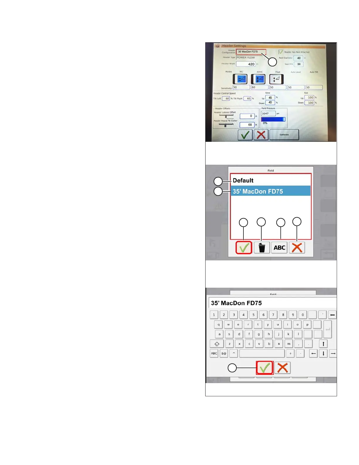 on the header list. Touch the MacDon header
