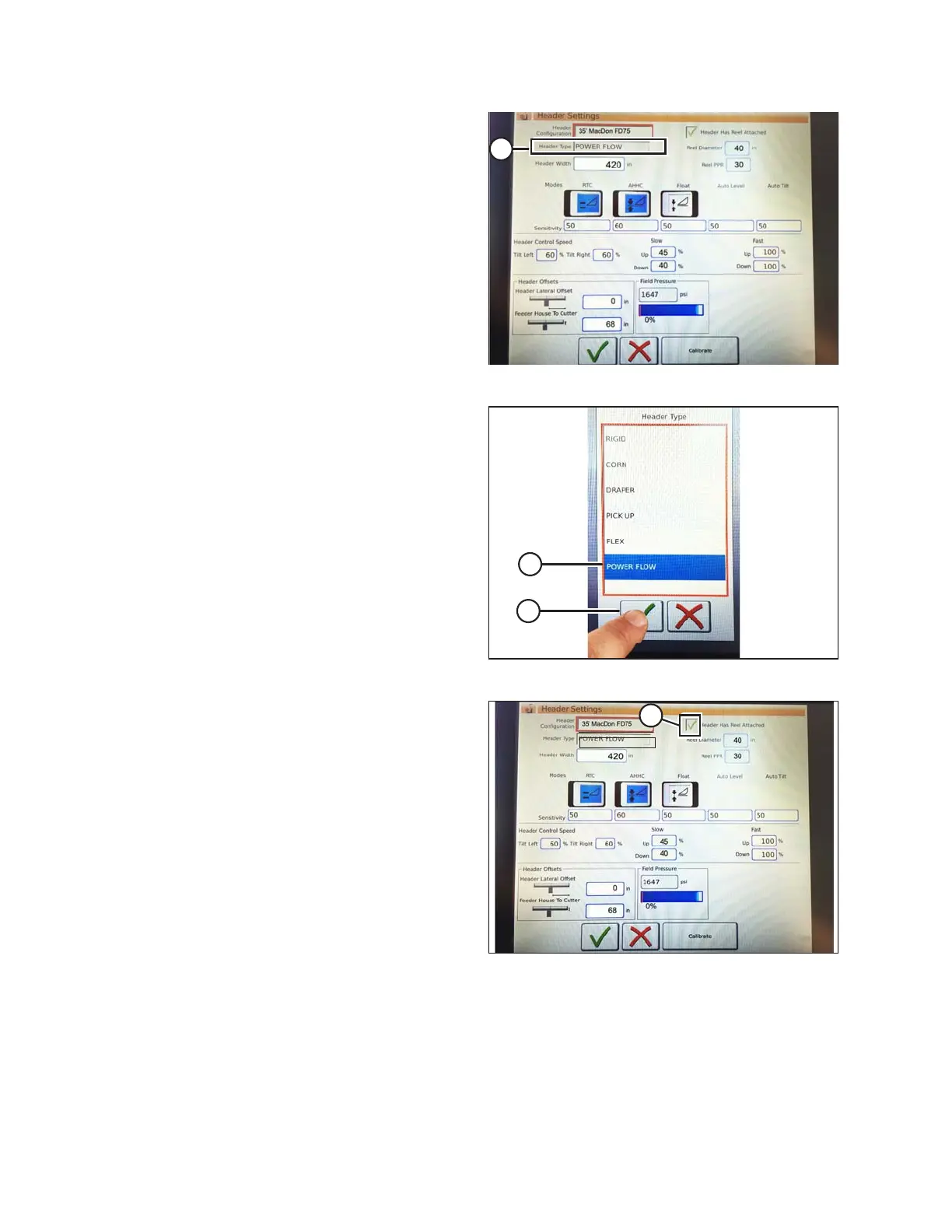 FlexDraper headers, touch POWER FLOW (A)