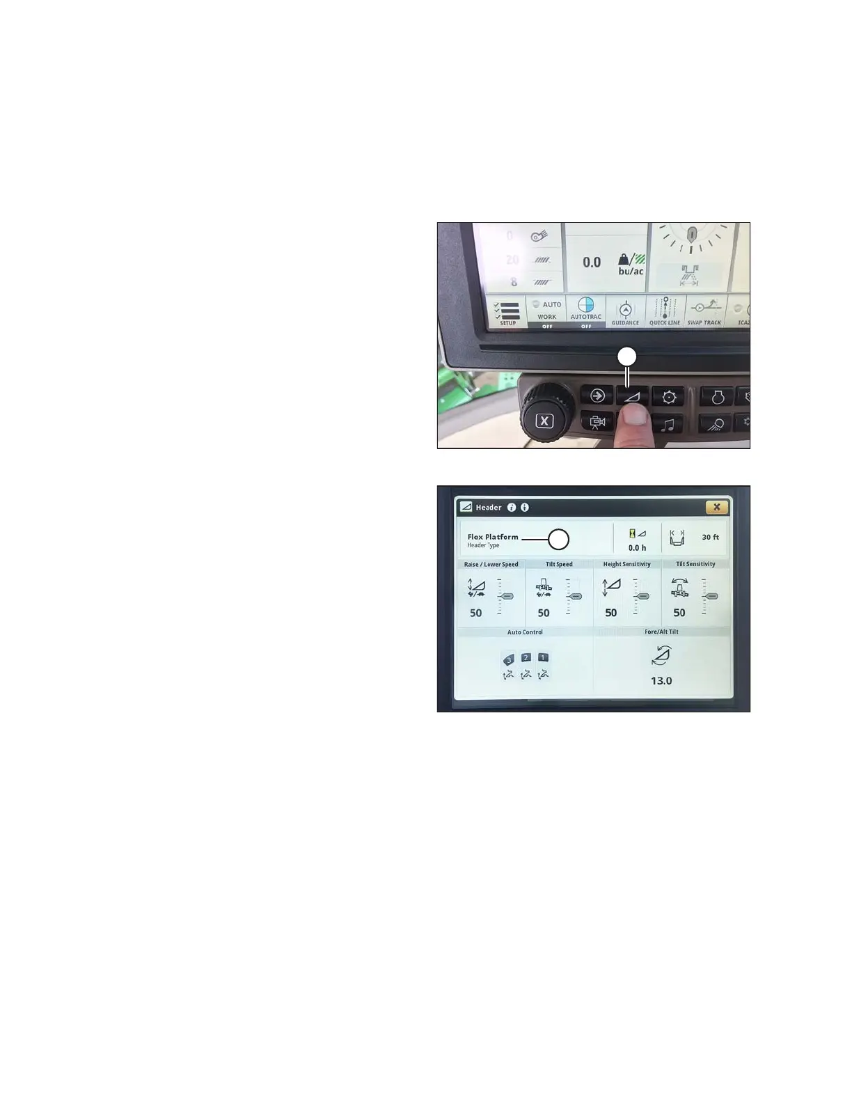 MacDon FlexDraper FD1 Series - John Deere S7 Series Combines; Setting up Header (John Deere S7 Series)