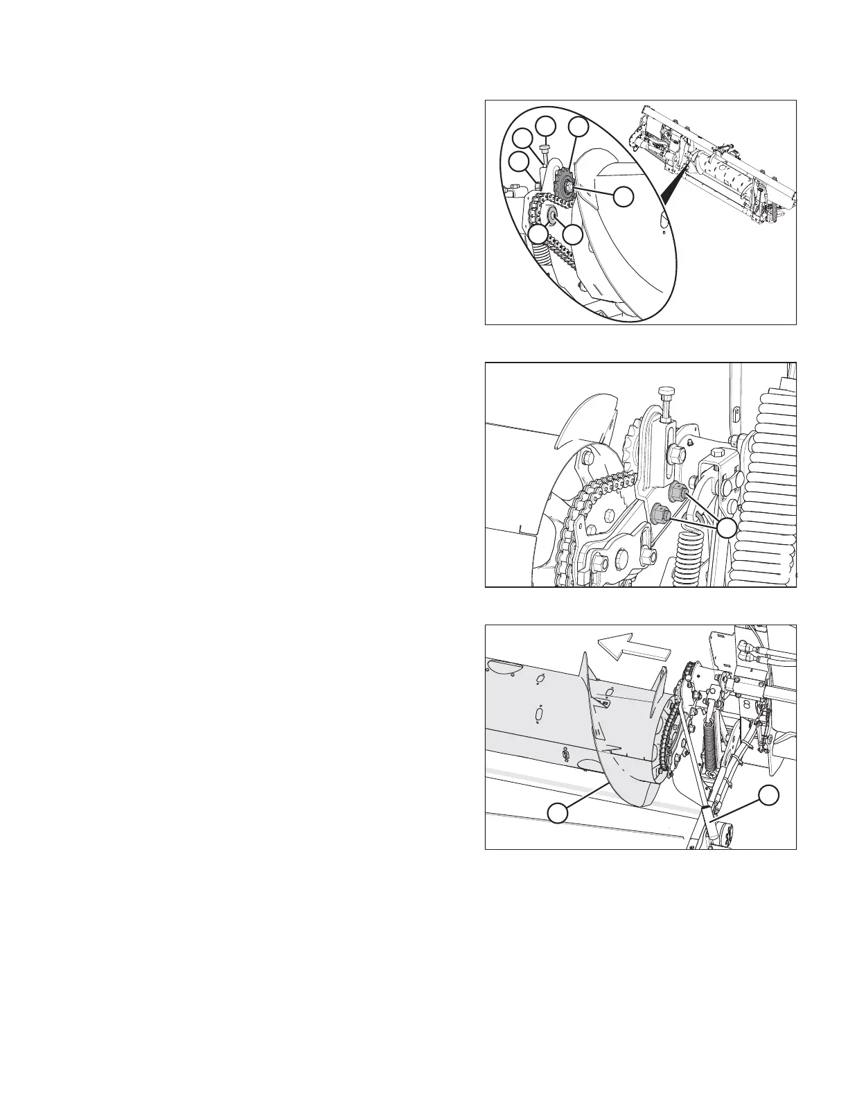 9. Loosen idler sprocket nut (A), and raise sprocket (B) to