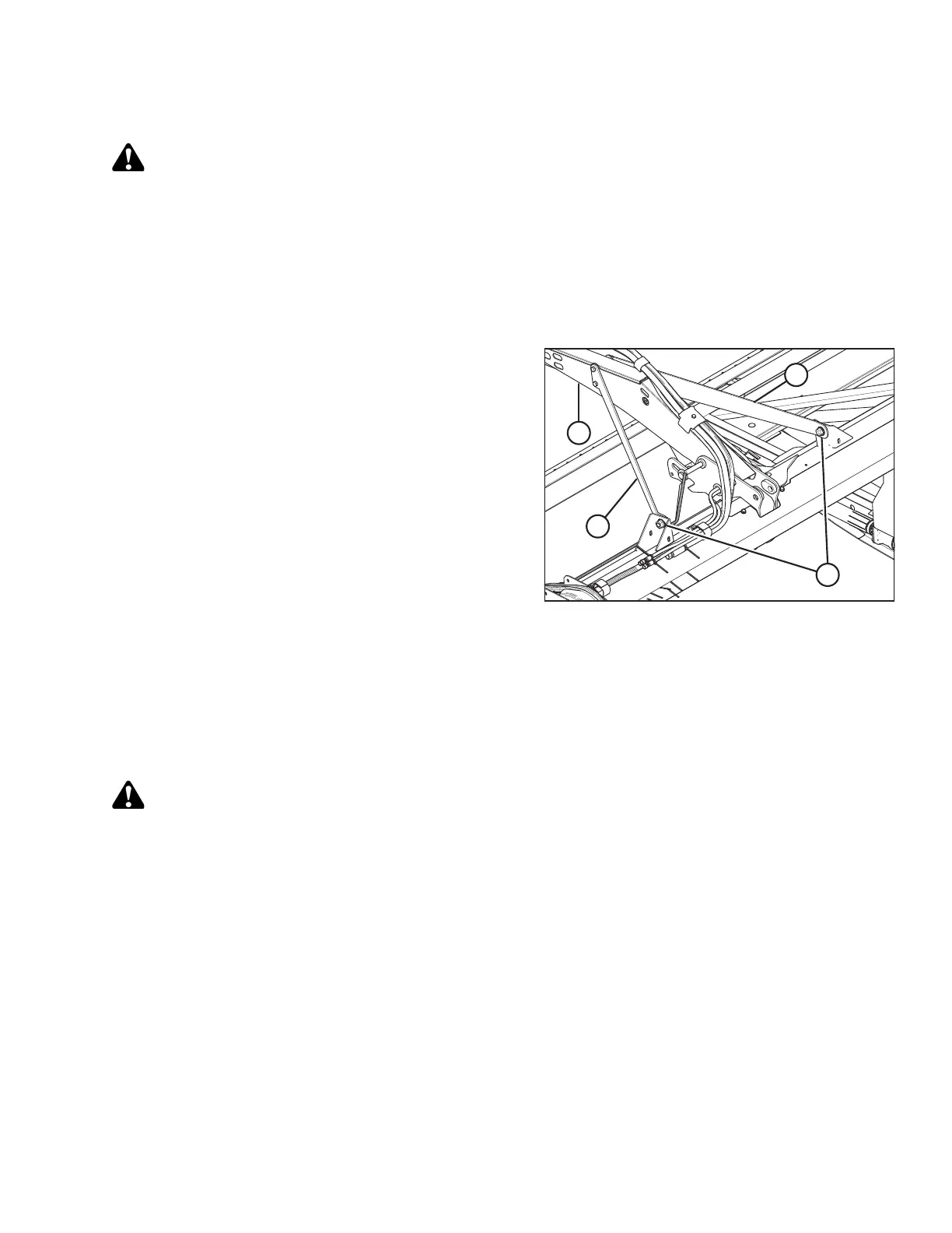 1. Raise the header enough to put 150 mm (6 in.) blocks under the outboard skid shoes. Lower the header slowly