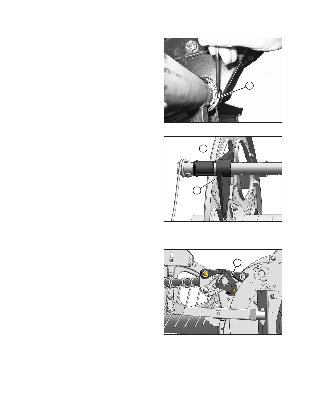 6. Rotate tine tube arm (A) until clear of the disc and slide