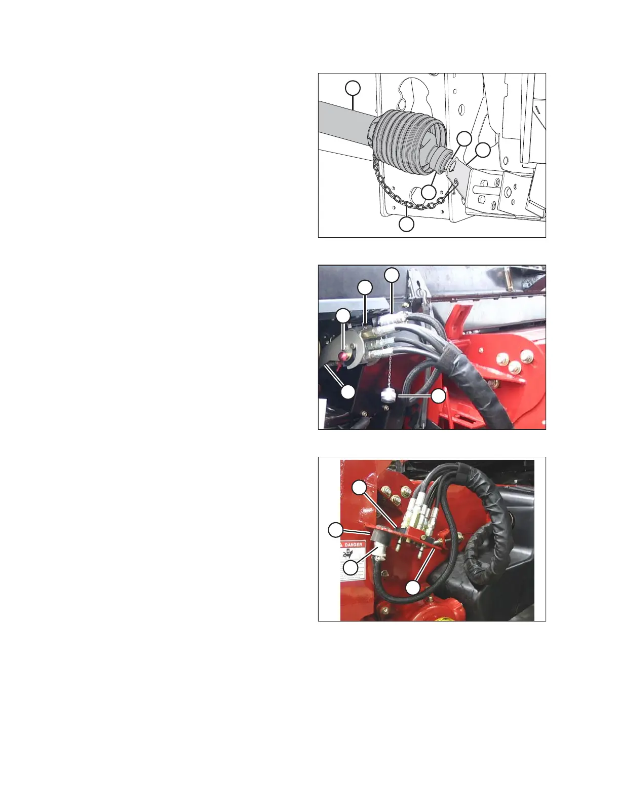 6. Attach safety chain (E) to support bracket (B).