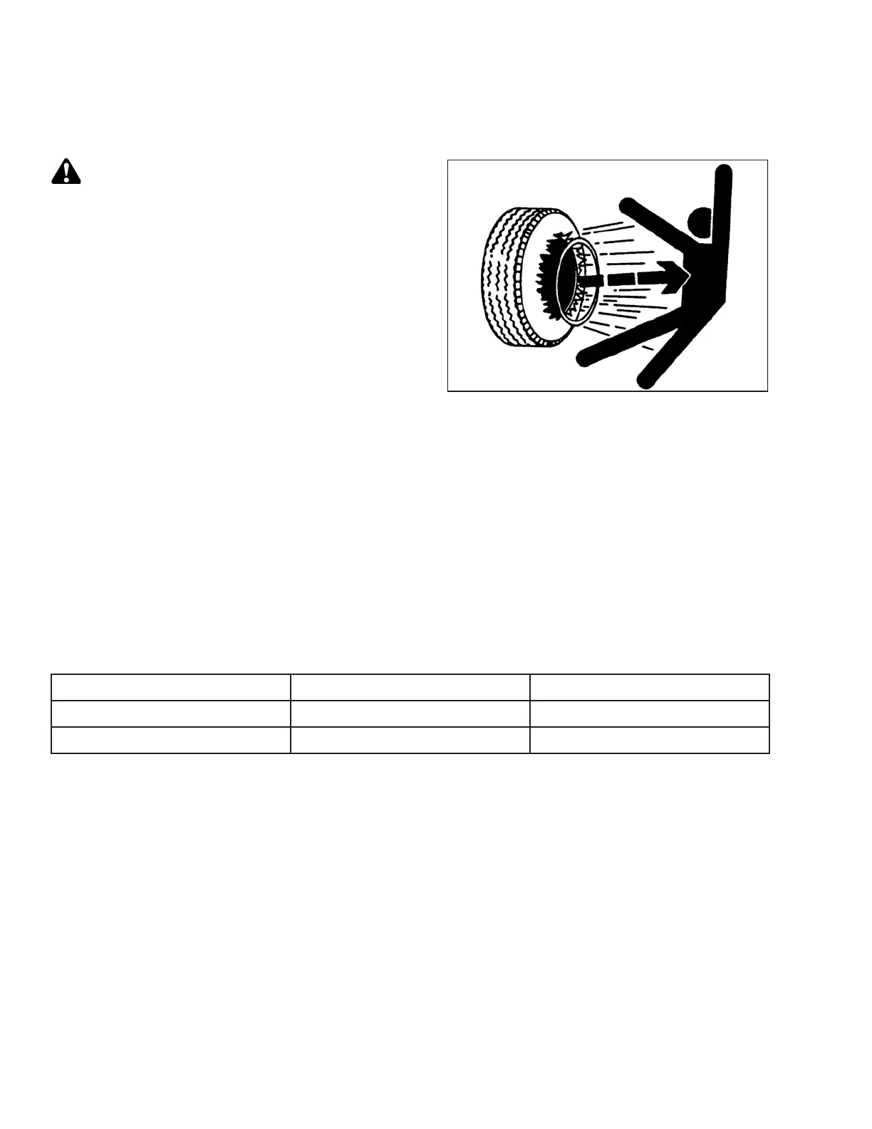 • Never use force on an inflated or partially inflated tire.