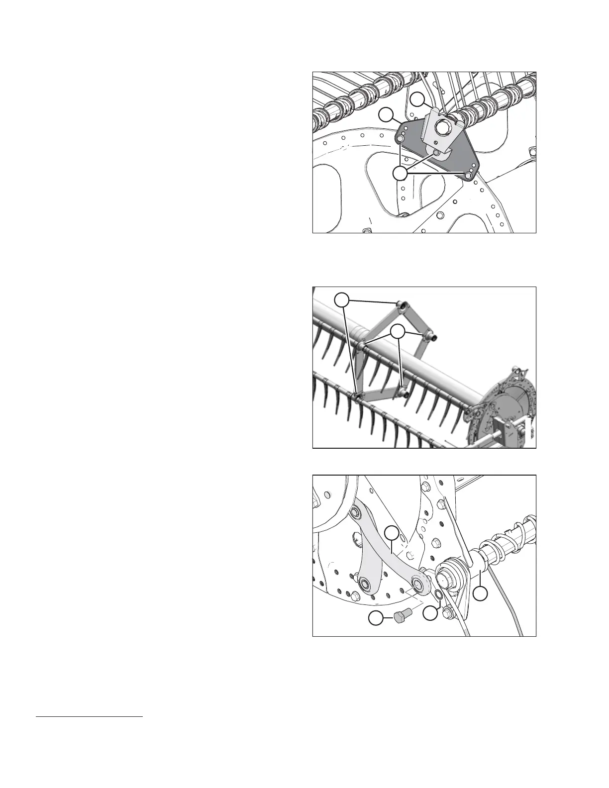 15. Remove bolts (A) securing tine tube arms (B) to the tail and