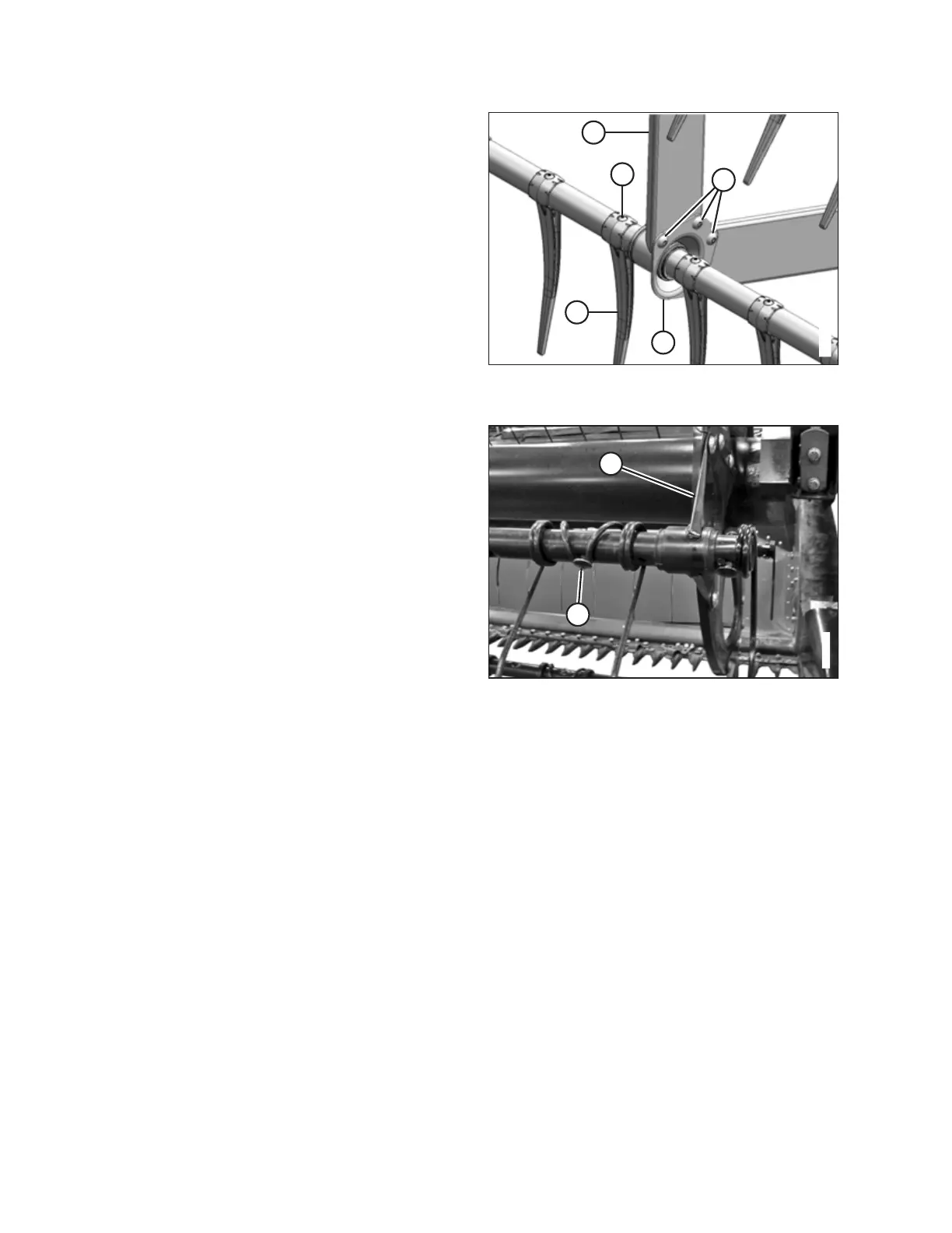 36. Attach the fingers to the tine tube with bolts and nuts (B).