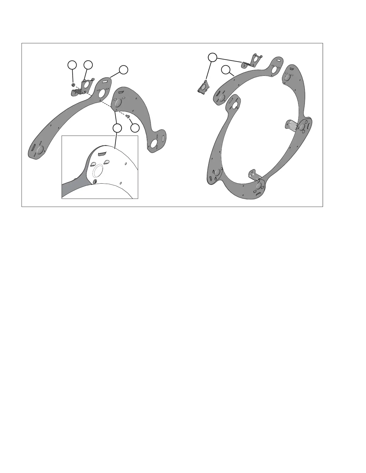 a. Position endshield segment (A) BEHIND segment (B). Engage endshield support tabs (C) through both segments,